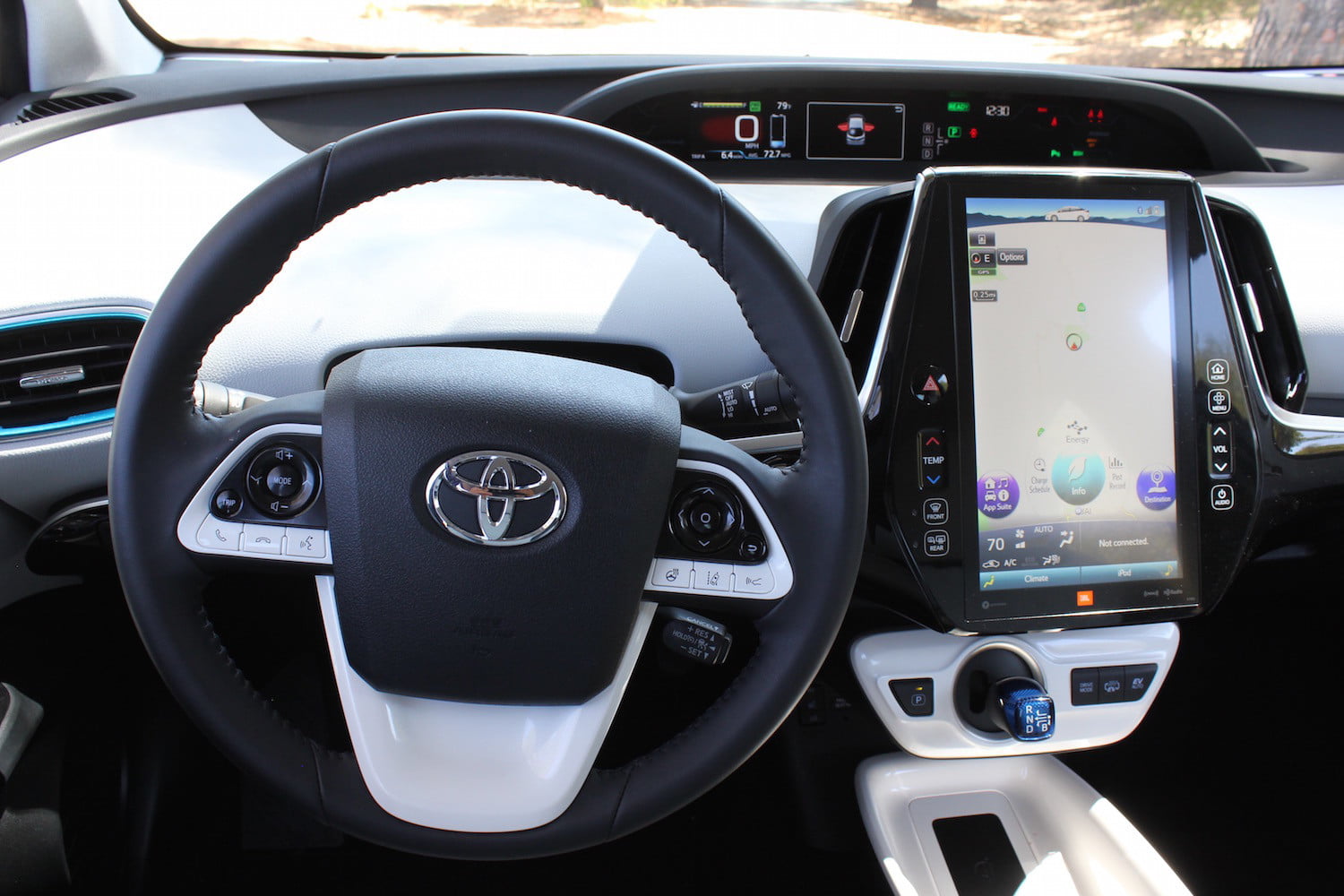 2017款普锐斯Prime配备了一系列便利的技术。入门级Prime Plus自带的功能包括自动气候控制、带有Entune音频、导航和丰田应用程序的7.0英寸信息娱乐系统、蓝牙、4.2英寸彩色TFT显示器、两个12V端口、一个USB连接、备份摄像头和按钮点火。在高端版的基础上,推出了11.6英寸平板电脑风格的屏幕。满载(高级)模型层平视显示器,JBL 10扬声器音频系统,远程空调(起飞前加热或冷却客舱),和智能泊车辅助。