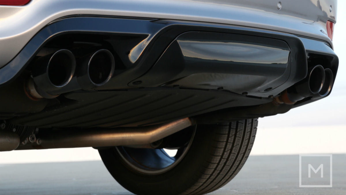 理论上,Trackhawk听起来很笨重,就像被困在铁罐里的玩具蛇,等着某个可怜的乔打开盖子的时候给他一个惊喜。实际上,这就像转动旋钮一样容易控制。轴与轴之间的扭矩分配、油门响应、换挡攻击性和转向重量都是通过驱动模式来管理的。将Trackhawk留在Auto中,与油门保持健康的关系,这就是一款典型的SUV。你可以舒适地搭载5名乘客,在后排座位后面塞进36立方英尺的东西,拖着7200磅的东西。座椅是长毛绒的,8.4英寸的UConnect信息娱乐系统是最先进的,可用的19扬声器Harmon Kardon音响系统是一流的。