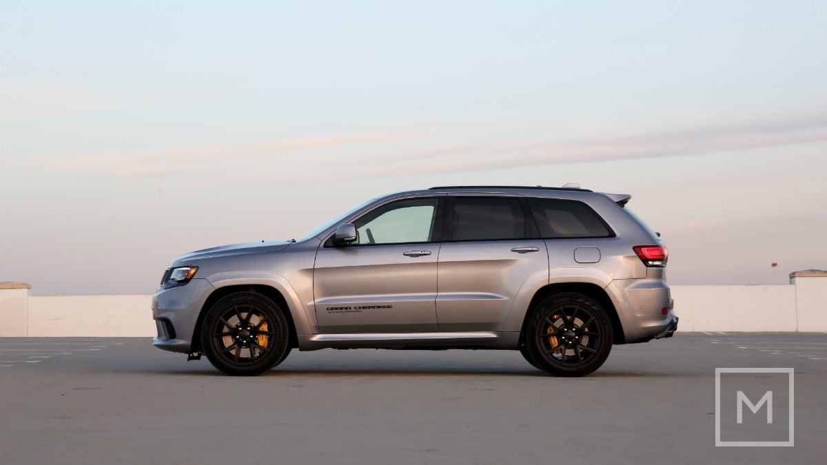 所以我就在这里,开着一辆吉普车大切诺基。在我的右边,另一辆大切诺基车缓缓地开着,旁边是一位30多岁的妈妈,她蹒跚学步的女儿被绑在儿童座椅上,几乎没有从后窗框里往外看。毫无疑问,我们周围的每个人都会毫无区别地看到两辆吉普车。我不能责怪他们;2018年的吉普大切诺基Trackhawk只有一个四尖排气系统,一个单一“Trackhawk”后挡板上的徽章,黄色制动卡钳,雾灯删除在前筋膜。