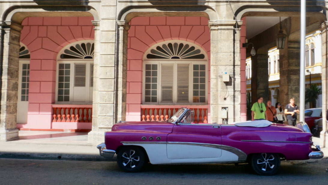 看看古巴的紫色(左上角)的充满活力的肖像美术馆博物馆。我们在城市历史中心的Buick(右下方)中发现了一项研究Cienfuegos.。显然,柔和的柔和色彩在经典的汽车人群中受到青睐。