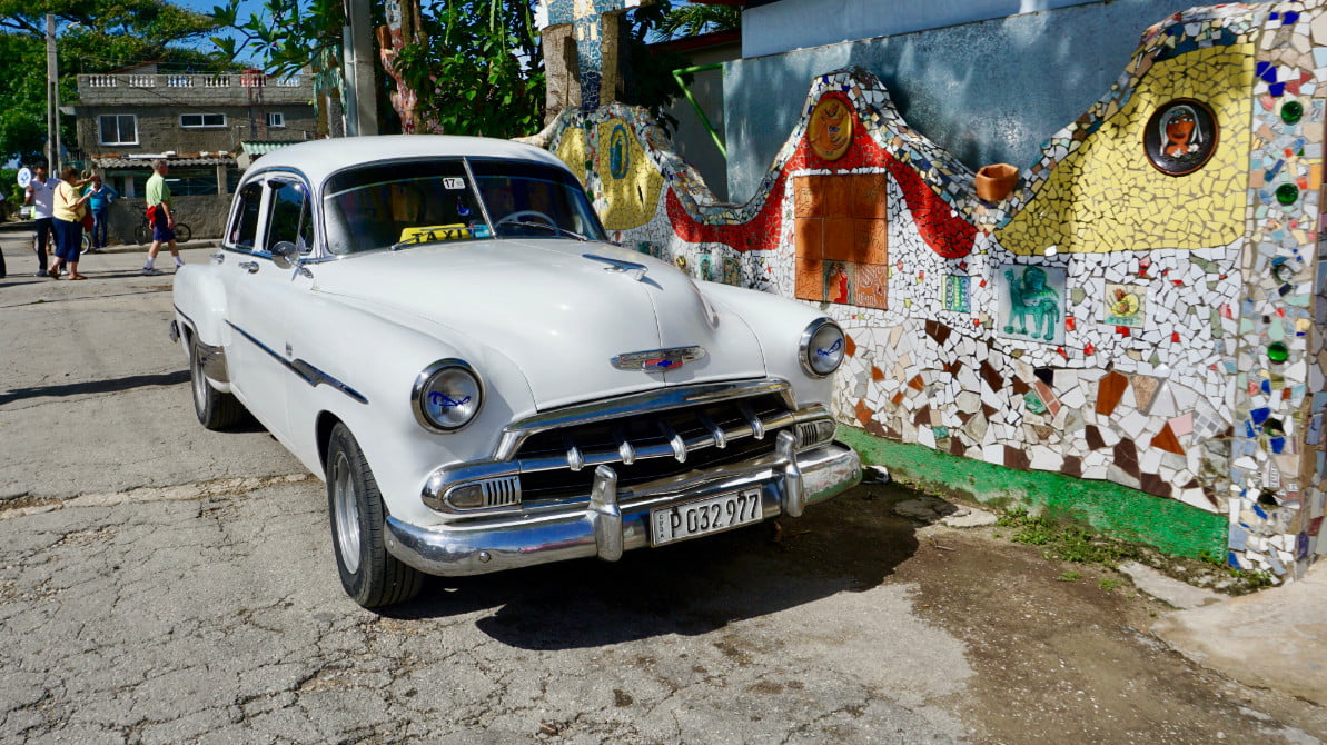 然而,我们也能够找到一些腭裂,就像这个雪佛兰(左下角)在马赛克前面Fustrelandia而这种白色奇迹(右下)拉到Cienfuegos的艺术家公社。