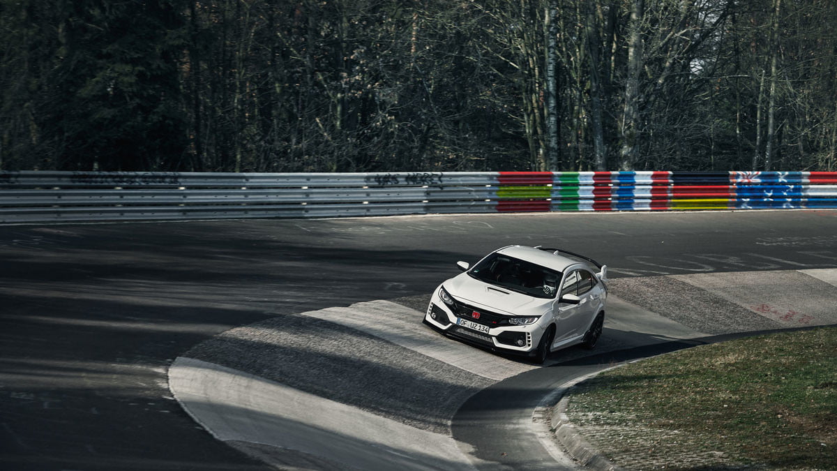 2017款思域R型车的原型车“在技术上代表了生产规格”,在纽博格林进行了一圈计时,并创造了一项记录。R型在12.9英里的赛道上狂飙只用了7分43秒,几乎比上一代R型快了7秒,比目前的前轮驱动圈纪录保持者大众高尔夫GTI俱乐部运动(VW Golf GTI Clubsport)快了3.39秒。三秒多一点听起来可能不算什么,但在单圈计时的世界里,这是一段漫长的时间。