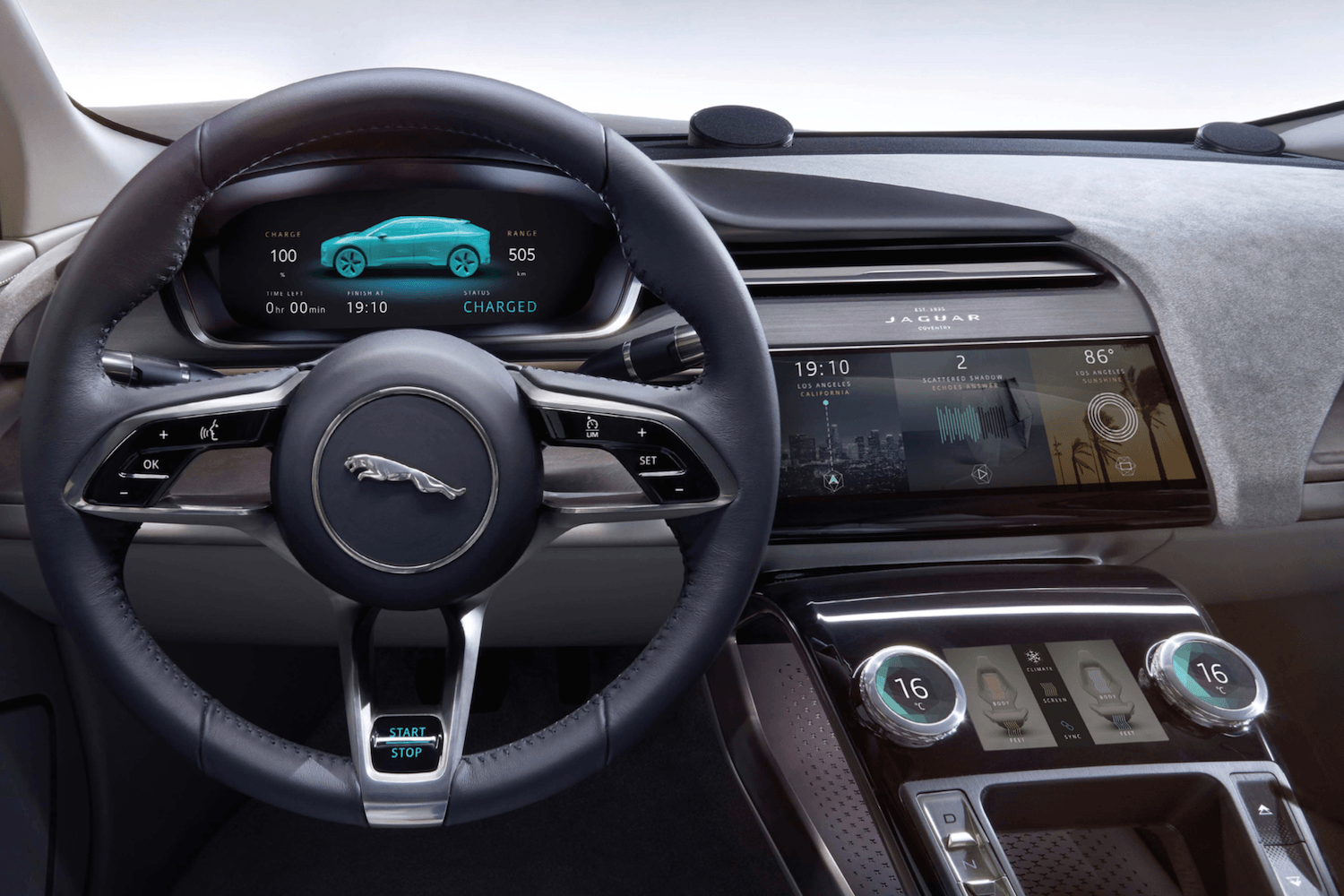 我的步伐是强调一种空间和运动的感觉。为此,驾驶员和前排乘客对于交叉坐下来,后乘客有充足的头部和血清。10.0英寸完全数字驱动器显示器和12.0英寸信息娱乐屏幕主导划线,而较小的第三次显示器位于中心堆栈下方,并显示气候控制设置。I-Pace提供Wi-Fi热点,Incontrol车辆应用程序和新的Spotify应用程序。