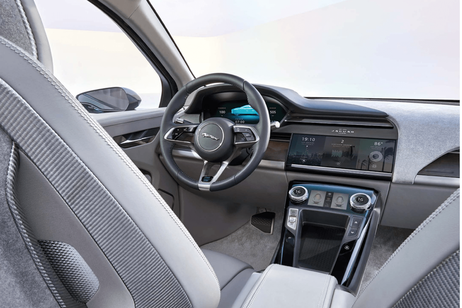 在内部,捷豹的设计师们设想了一个先进的技术,高端的建筑材料,和一个很好的对比布局座舱。
