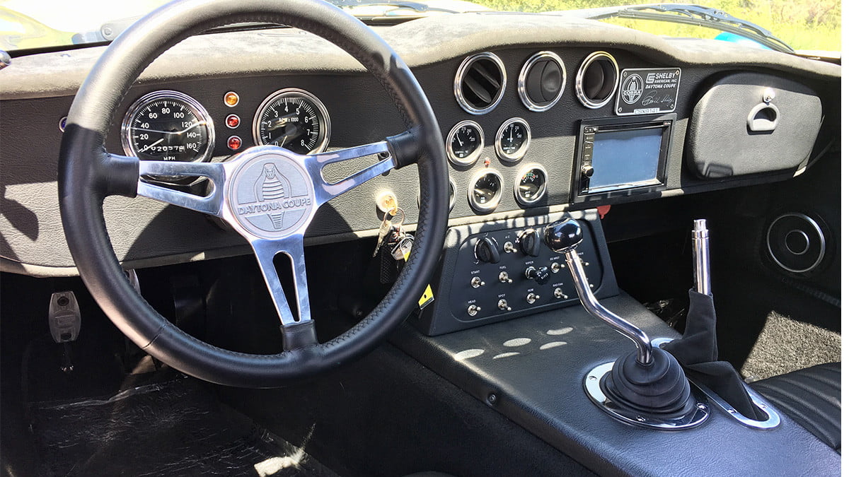 要点燃谢尔比·代托纳的全铝427温莎V8引擎需要三个步骤。侧出口排气声隆隆,我们启动了Tremec六速手动变速箱的第一档,松开离合器。它有525马力,但穿过郊区的车流毫不费力。符合人体工程学的皮革座椅和空调暴露了汽车的赛车血统的外观。这只是一辆穿着经典服装的现代跑车吗?不完全是。