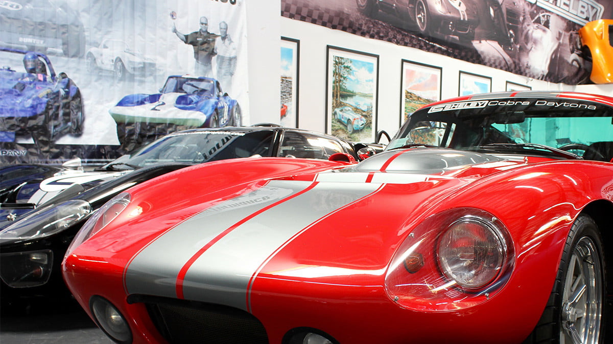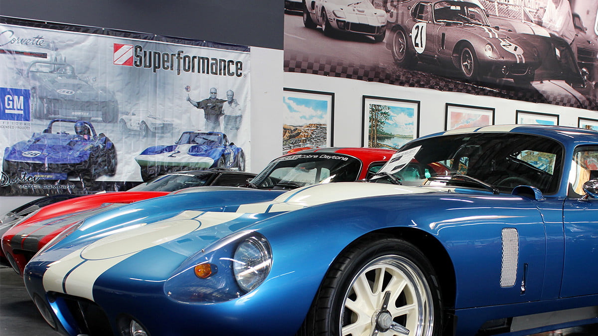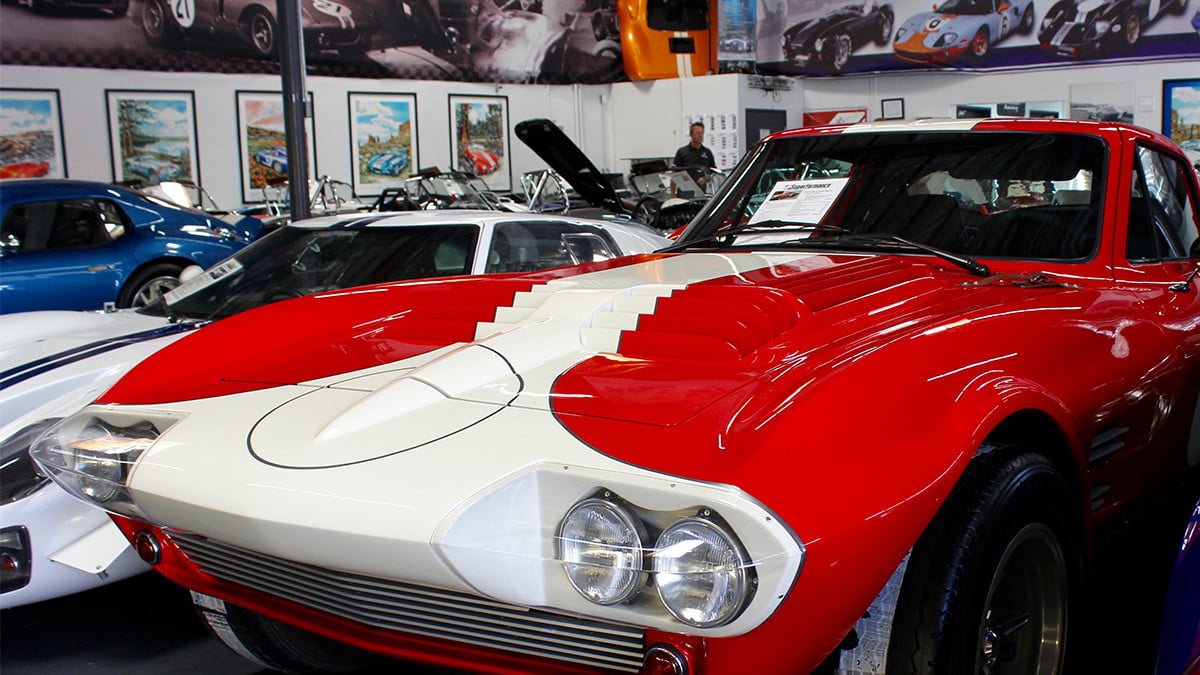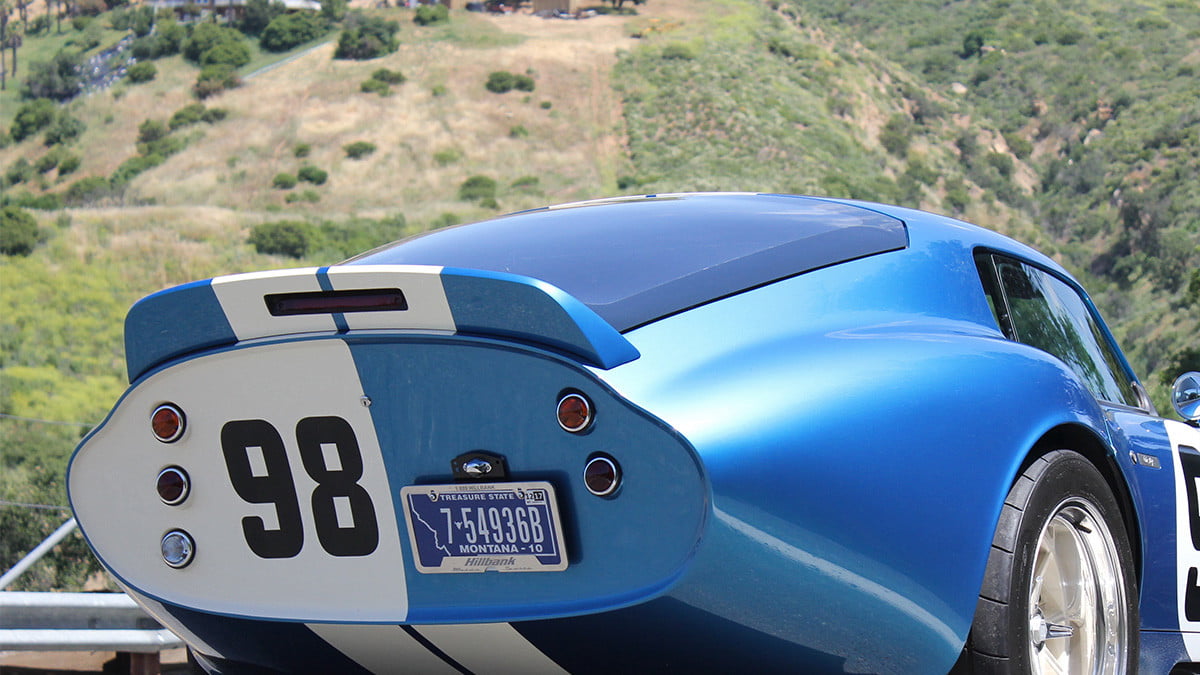 步行进入林业,加利福尼亚州欧文,加利福尼亚州的山顶赛车,以及AC Cobras,Daytona Coupes,Corvette Grand Sports,以及Ford GT40s会迎接您。无论您的中产味道何种突出,整流都有正确的合适。我正在舒服卫兵蓝色的谢尔比代Daytona Coupe,带温布尔登白色条纹。