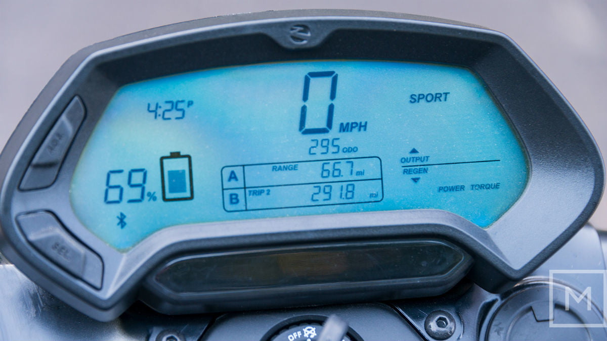 当您在液晶显示屏上运行电池到零时会发生什么?令我惊讶的是,当电池电平显示点击Zip时,DSR并不只是突然关闭并变暗。基本上,它只是继续前进,就像在古老的汽油摩托车上的煤气箱中那一点“保留”。加速首先使电池击中单位数,然后最后,当时迈里略高于零,开始努力到前50英里/小时。但仍然,在城市骑行中,它只是在零标记超过零标记的几英里,所以如果你担心米跑出来的时候会关闭,不要汗流,它不会。