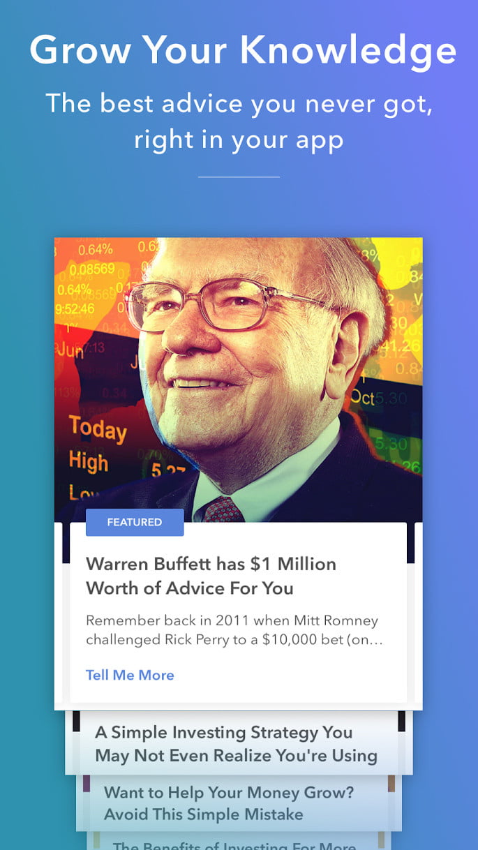 橡子是为休闲投资者打造的。如果你想把一些额外的钱用于投资,但又觉得自己没有足够的钱,或者不确定从哪里开始,那就看看Acorns。将信用卡与应用程序连接,每当你用信用卡购物时,它就会计算到下一美元,并将多余的零钱存入交易所交易基金。不需要庞大的资金或华尔街的精明。您还可以选择每天、每周或每月进行重复投资,或根据您的决定进行一次性投资。你决定你自己的投资风险偏好,所以你不必觉得你在用你宝贵的便士玩高赌注的扑克。