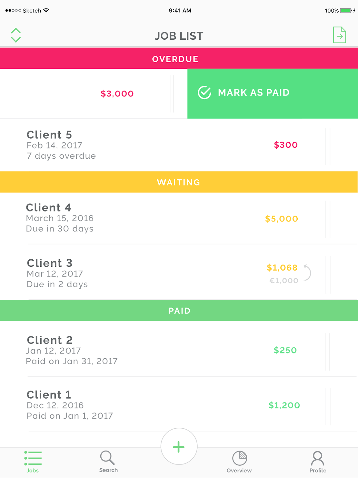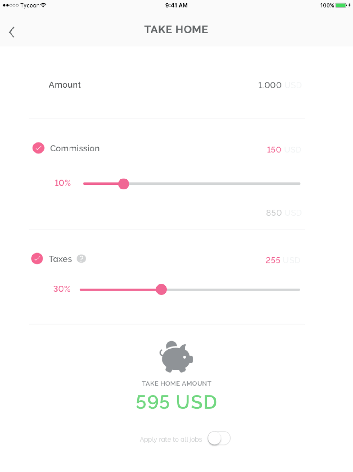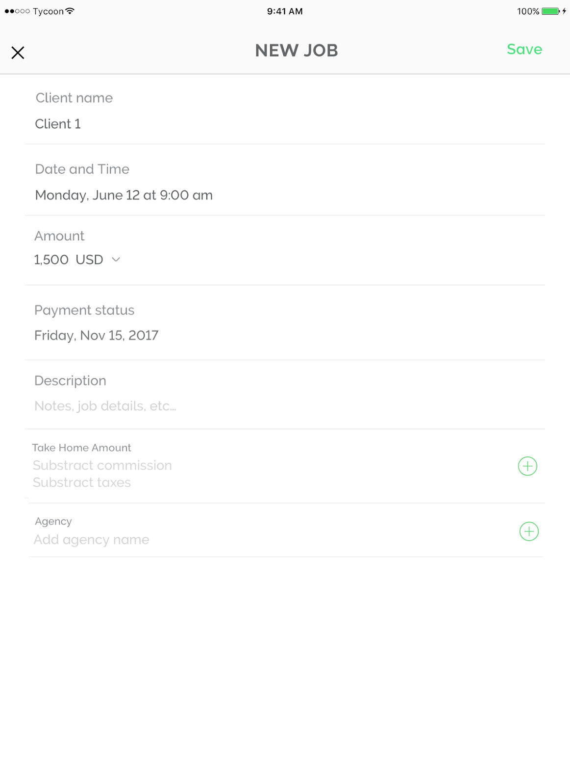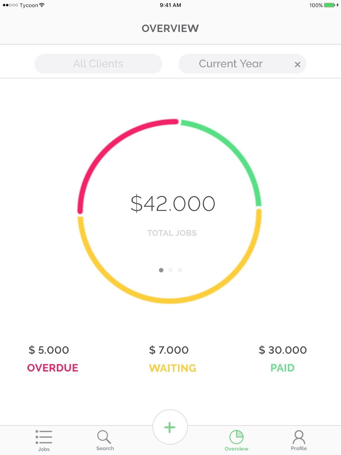 《大亨》解决了最令人沮丧的财务问题之一:跟踪你的工作和自由职业的收入。一旦你找到了一份新工作,在你的工作列表中添加详细信息,这款应用就会记录下你所有工作的报酬。《Tycoon》将你的工作分为三类:过期工作、等待工作和付费工作,这样你就可以快速了解自己的财务状况。它会通知你如果逾期付款从客户端,你可以给他们一个提醒邮件应用程序中所有的细节。大亨的帮助下你可以熬夜迄今为止你做过多少,你欠多少,多少你应该从每个工作,除了税收记录演出在任何货币,计算实得工资减去代理佣金,然后把出口收入数据交给你的会计。如果你想在应用程序中填充历史数据,你甚至可以选择将你过去的工作跟踪信息发送给Tycoon团队,他们会将其添加到你的账户中,从而省去你手动输入的麻烦。