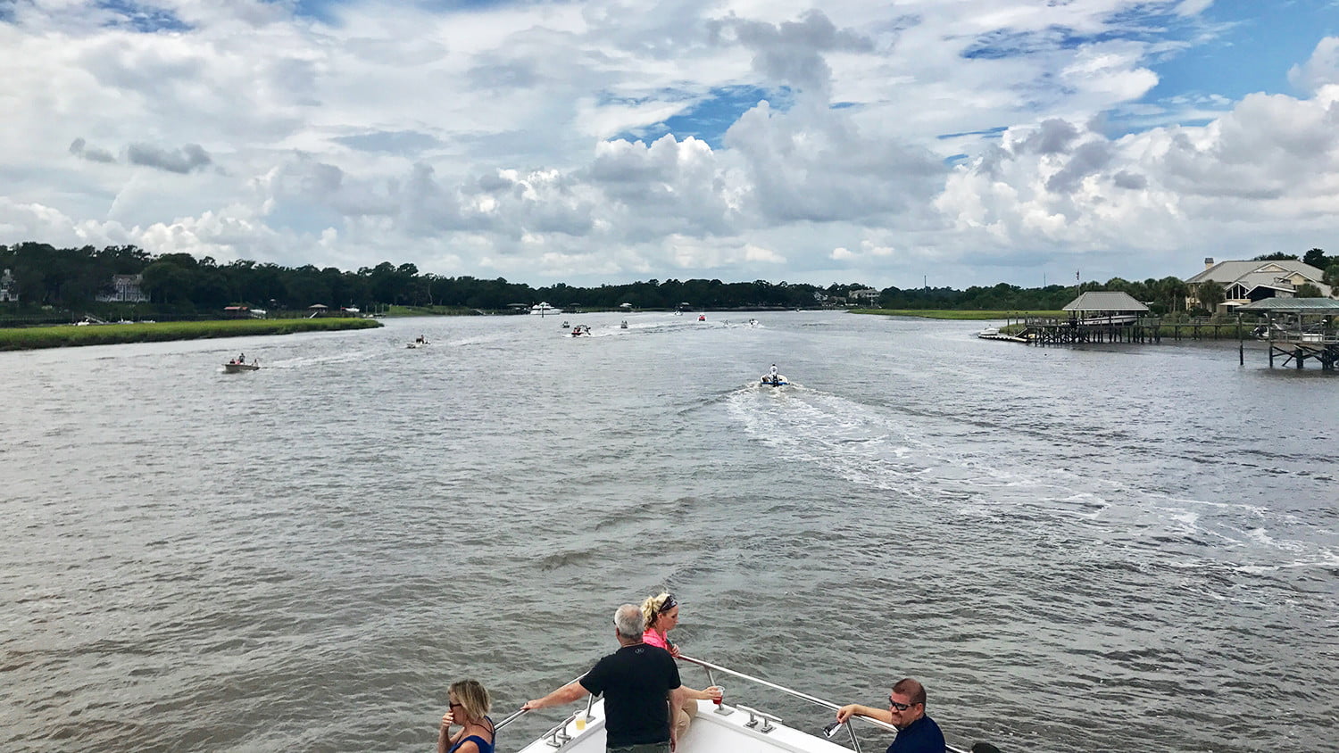 我们在下午1:30举行,给我们一个小时,找到观看月亮在大约2:30的太阳光线挡住太阳光线的完美地点。尽管云覆盖(我认为开放式酒吧帮助),我们队长鲍勃介绍了自己,迅速让我们知道我们不会进入港口,因为这是大约500艘其他船在约500艘其他船决定冒险的地方驾驶我们的船长。相反,我们远离城镇镇上的Wappoo Creek,进入Stono河远离人群,进入一个安静的,平静的水域,在那里我们唯一的其他邻居是几个皮划艇运动员和一些白鹭。