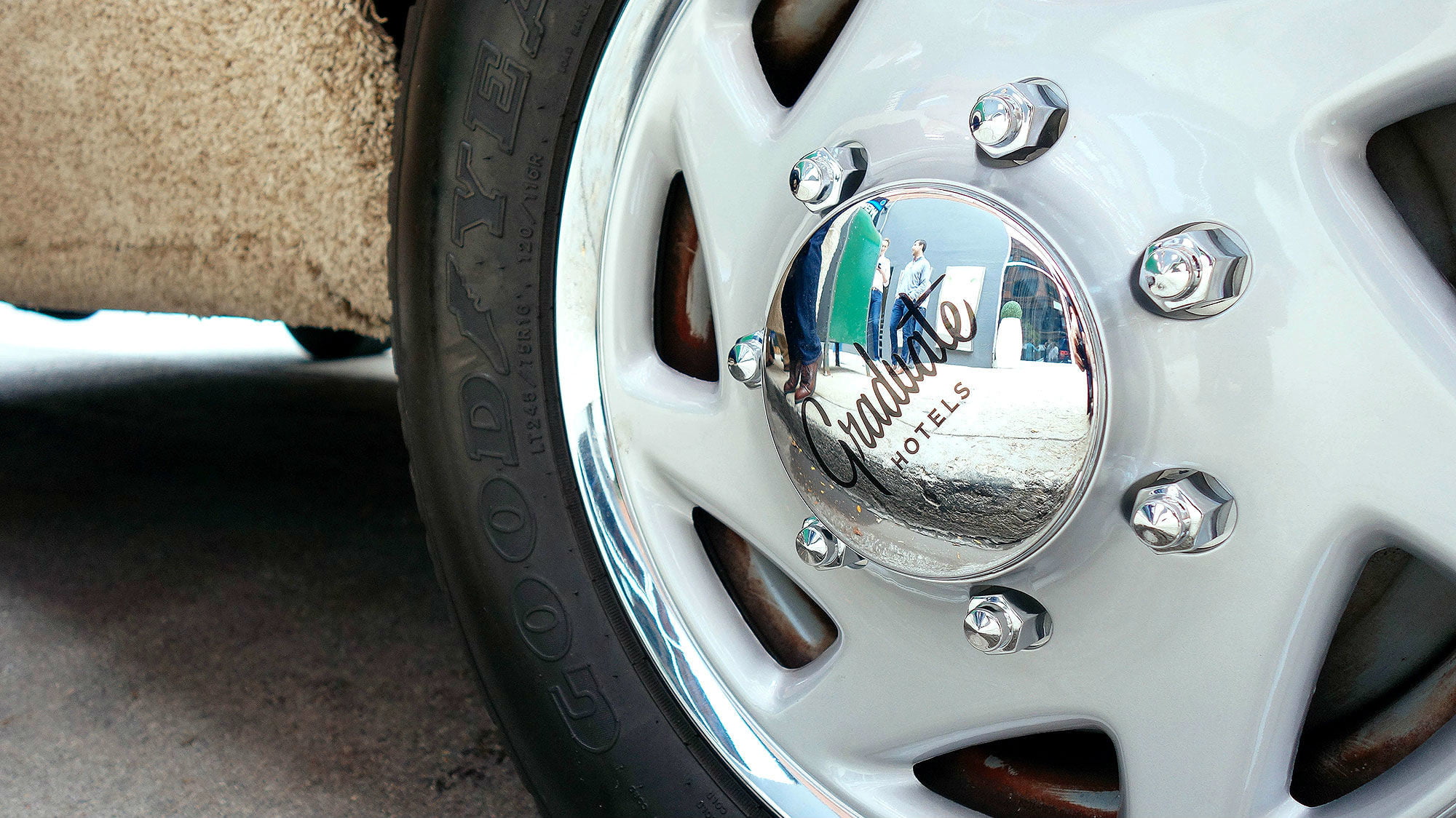 毕业生酒店,一个精品住宿的集合,散布在我们最喜欢的大学社区在全国各地,正在举办一个秋季弹出借道之旅使用《阿呆与阿瓜》马特·卡茨的复制品从一个城市到另一个城市,舔波兰人喝着啤酒庆祝秋季橄榄球赛季。