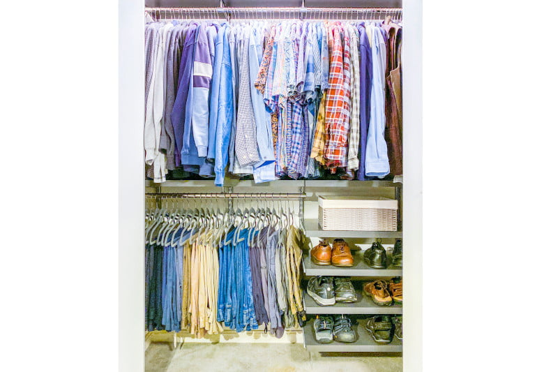 壁橱紊乱最常见的原因之一试图挤进太多空间。虽然你的东西在桩中,但是在未来六个月(夏季,春季,秋季秋天)中,您需要的库存,并将其他一切放入“存储”堆中。