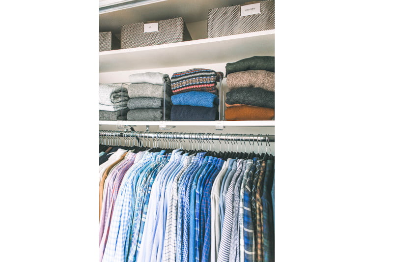 HORDERLY表明您正在使用的项目通常应该给您壁橱中最普遍的房地产。如果您每天穿T恤和牛仔裤,那么您想要那些前沿和中心。如果你一直穿连衣裙,让那些壁橱的明星。除了可能受损的毛衣外,你可以几乎可以挂起任何东西。所以真的想想你最常穿什么并将这些物品放在前面和中心。