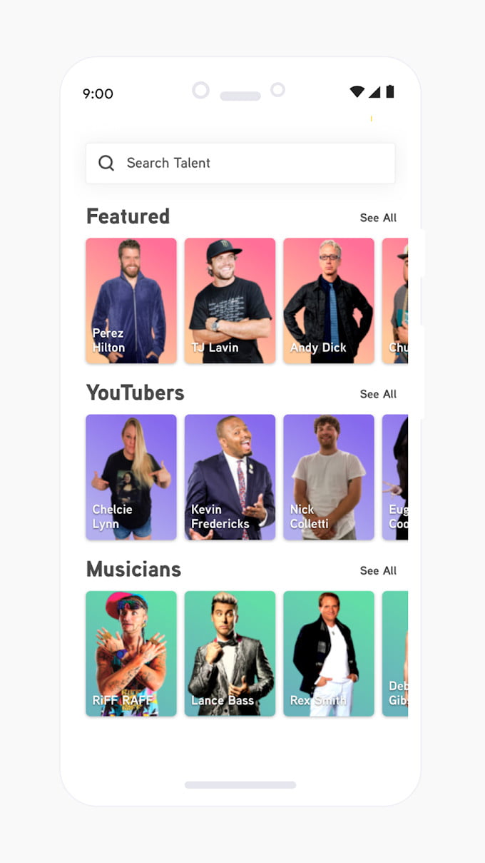 让韦斯利·斯奈普斯给你最好的朋友发一段圣诞快乐视频。或者是NBA球员德怀特·霍华德,世界上最有趣的人,或者终极美女艾曼纽埃尔·施莱基(斯隆随行人员).浮雕让您从运动员,演员或您选择的音乐家订购个性化的名人喊叫声。选择数百人士或超晦涩的名人,以获得热闹,独特,完全出乎意料的礼物。
