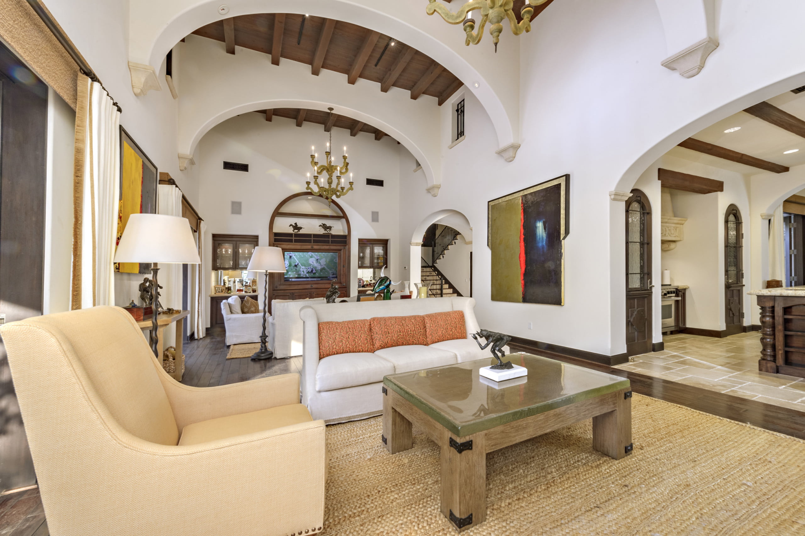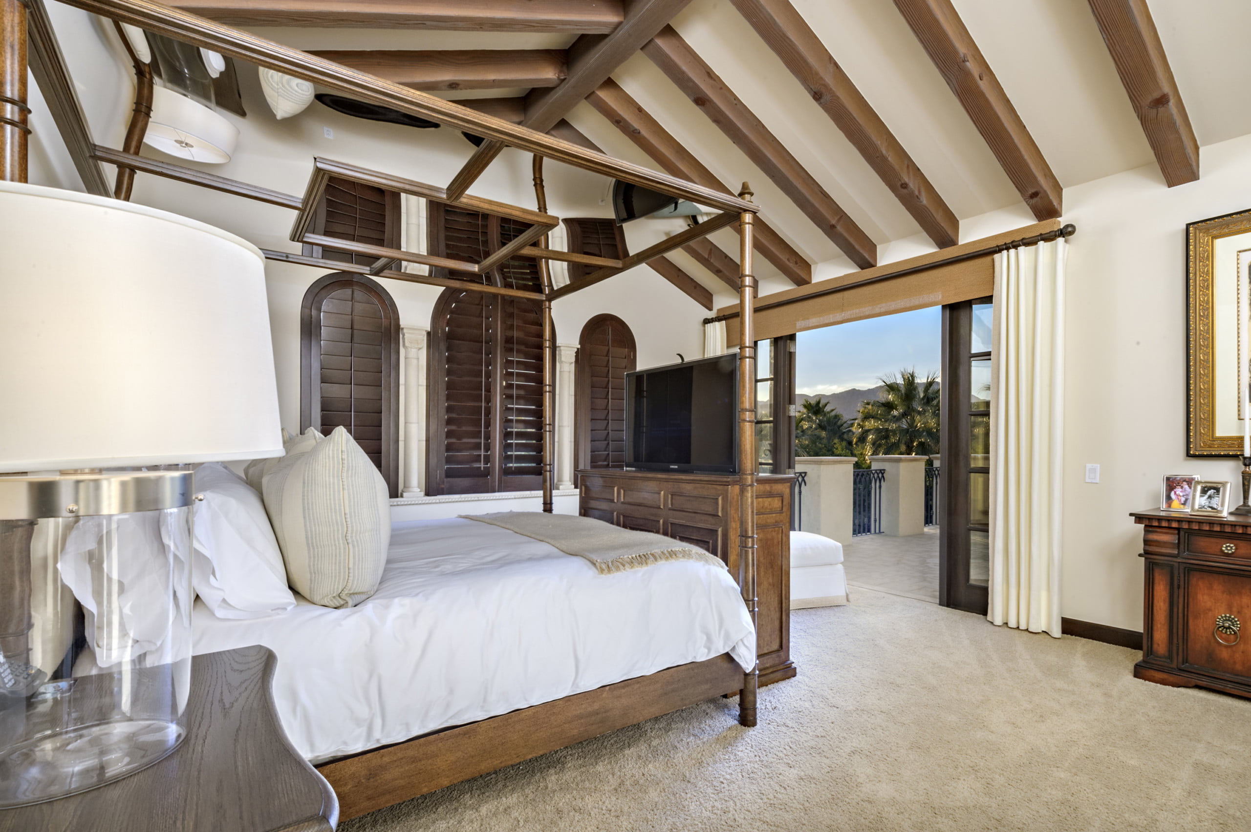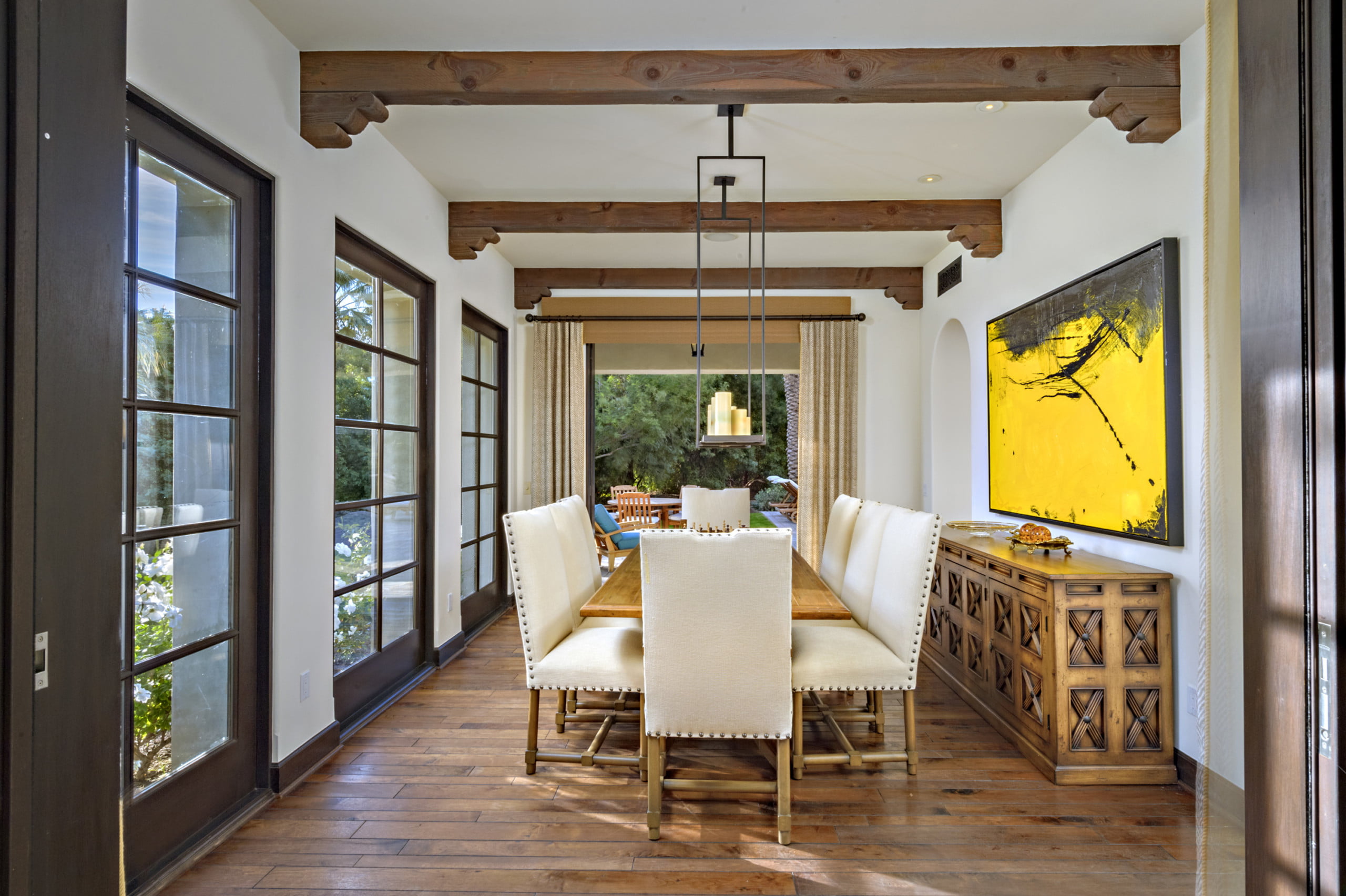它可能包围在外面与棕榈树,但访问La Quinta Residence立即将您运送到旧世界意大利。外面,粘土瓦屋顶是明亮的灰泥墙壁的黑暗口音。窗户在石灰石块中修剪,并在阳台上锻炼铁栏杆,所有Hark都回到地中海海岸。