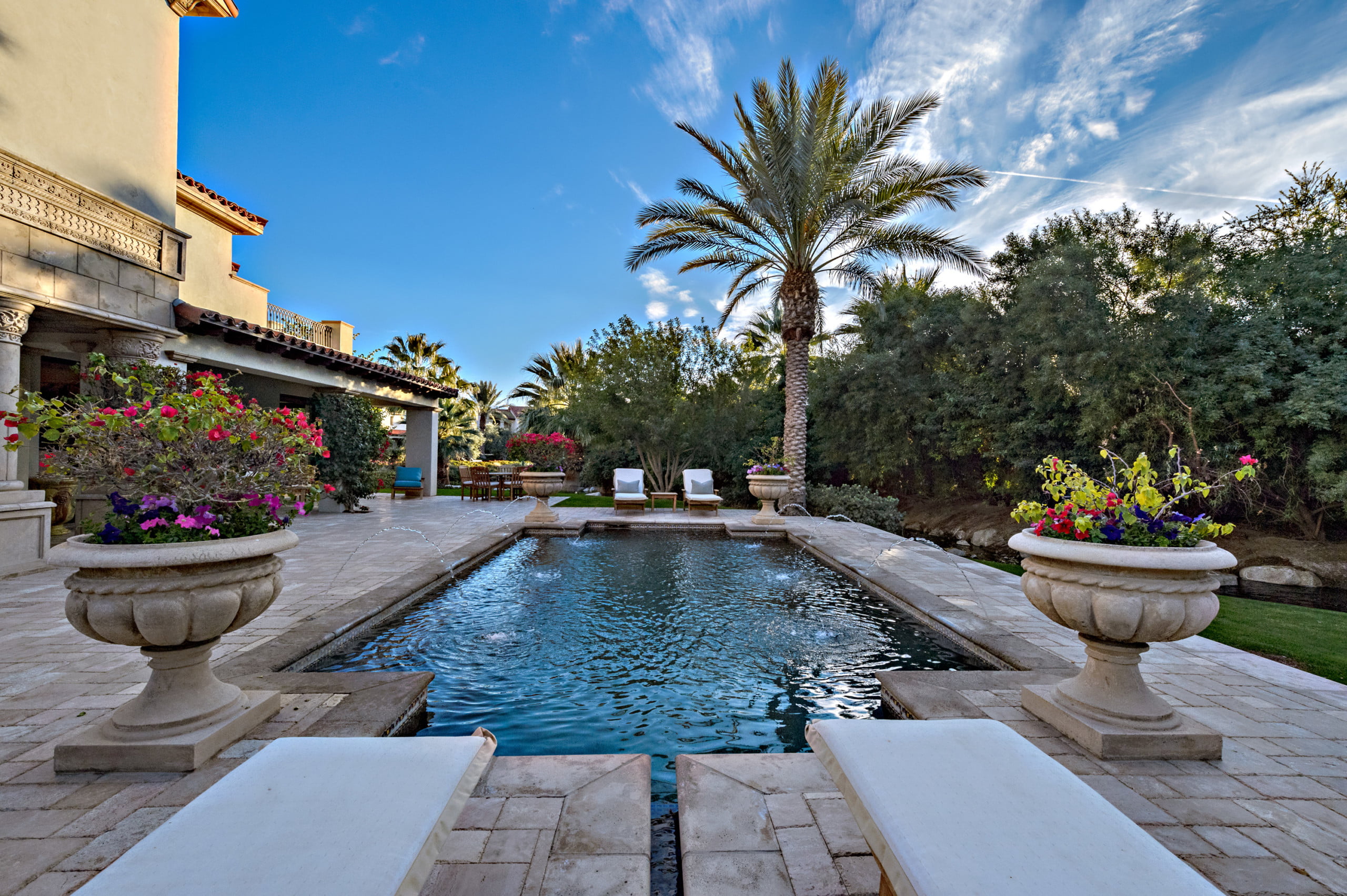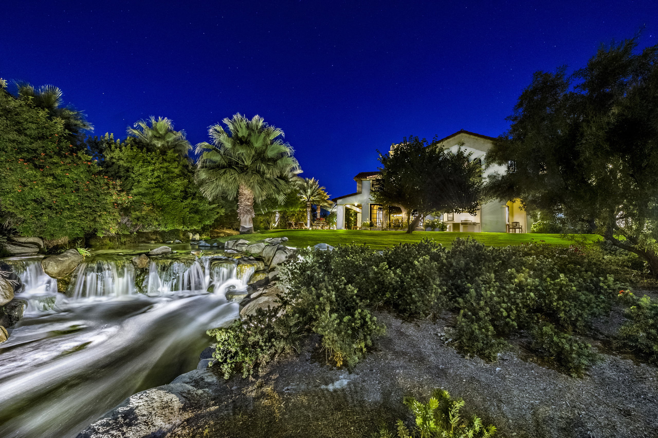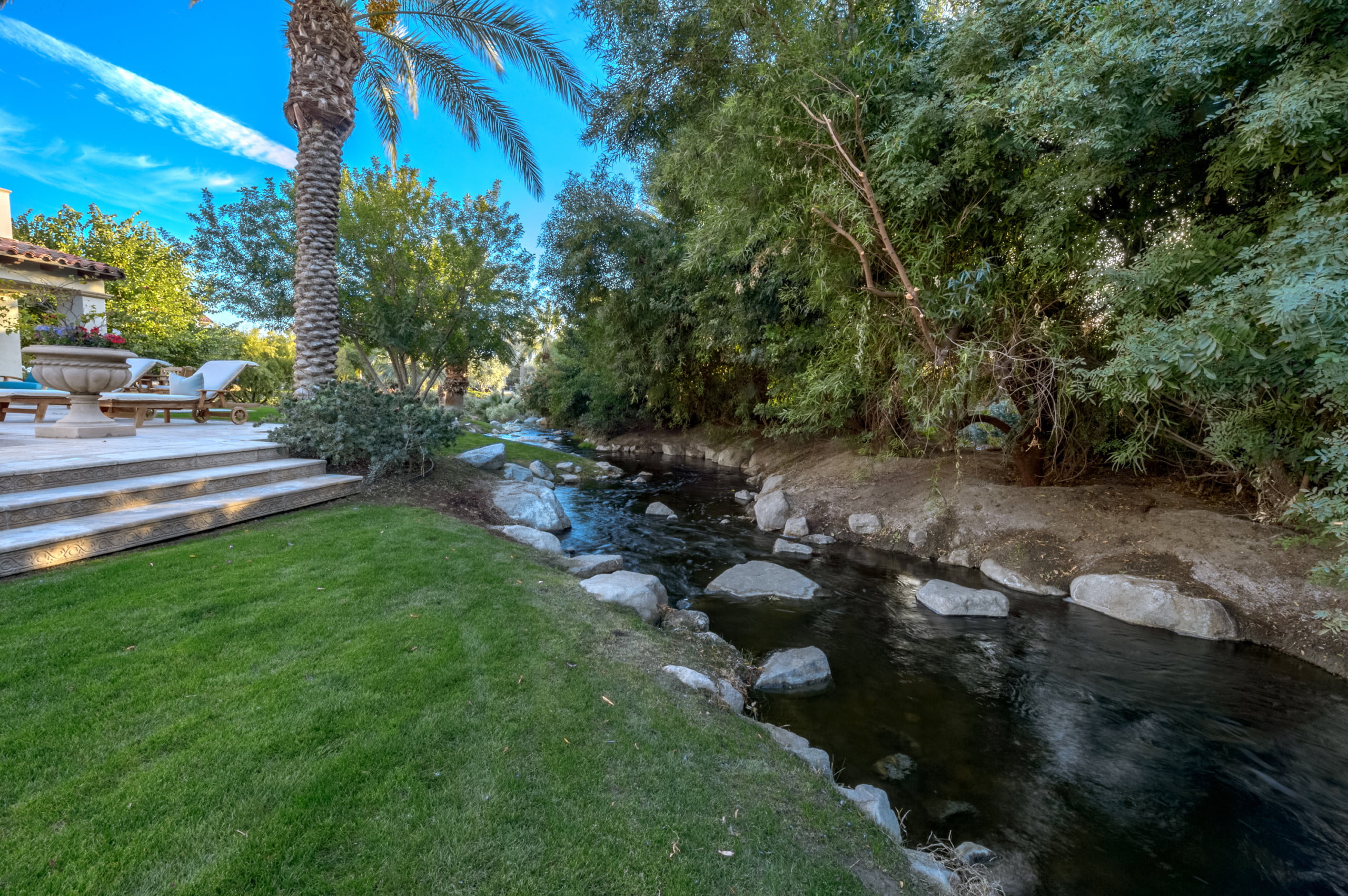 加利福尼亚州洛基塔塔的位置意味着全年的华丽天气,这个房子有大量的露台来到外面,享受阳光。每个角落都有水的特色,每个户外空间都有一个舒缓的逃脱。最令人惊叹的口音之一是落后于物业的人造溪。这是一个聪明的方式,让后院游泳池和热水浴缸感到私密,从附近的高尔夫球场偷窥。