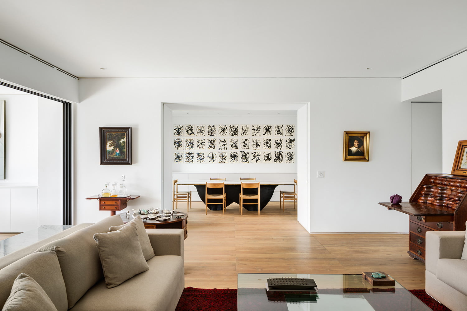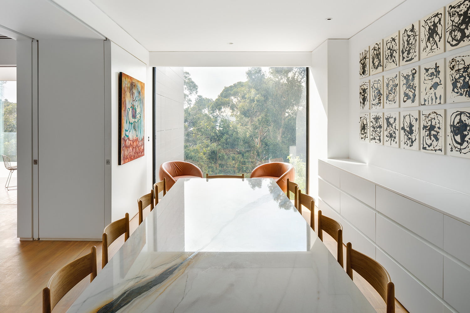 从任何一个露台里踩下,房屋拥有典型的艺术画廊氛围当代简约空间。事实上,它是所有者的迷你美术馆。凭借各种各样的碎片,将所有从现代主义者到印象派到文艺复兴时期的复制品,那些白墙是仔细显示的集合的完美背景。