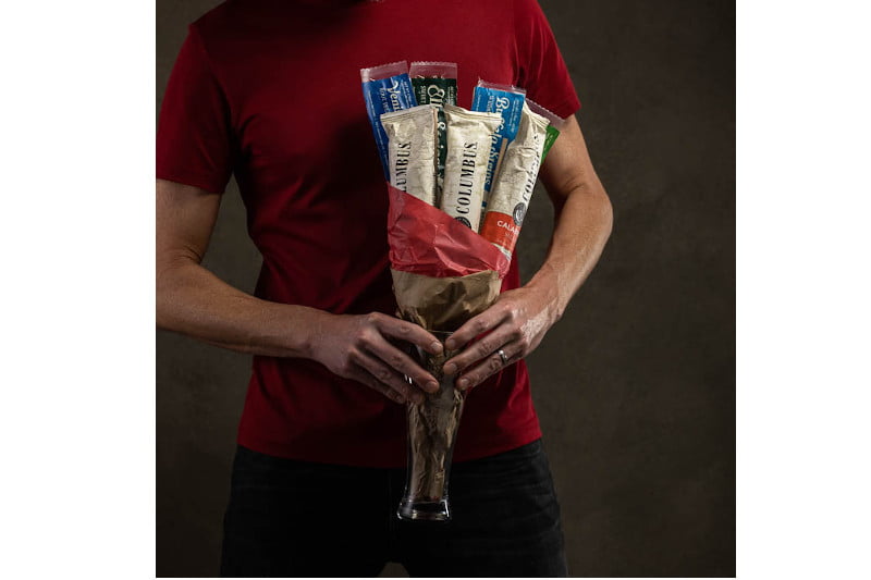 当然,鲜花很酷,但肉花束?这是为了得到训练的事情。美味的花束具有三个诱人的蒜味蛋白糖和四个异国情调的混蛋棒。你好,水牛威士忌枫棒。肉花束不仅有零食零食,还包括一个个性化的Pilsner玻璃,用于他最喜欢的杂志。