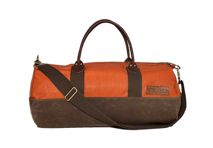 - 1.沙袋用回收的帆手工制作了这个行李袋。