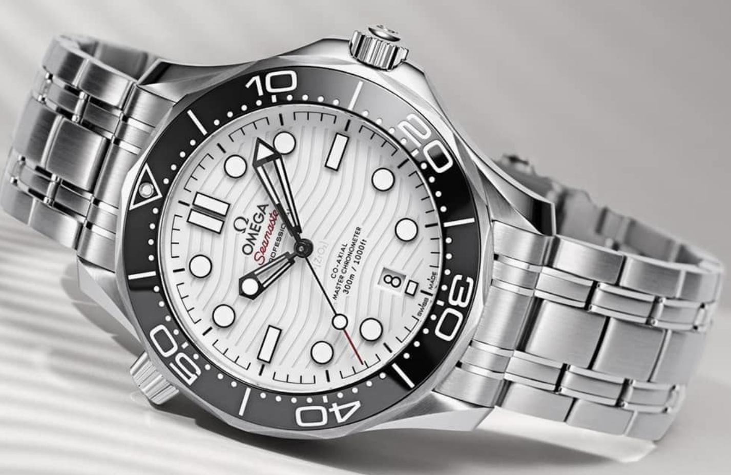Omega海师白拨子上方近似 Omega海师手表中任何其他手表上方有适当的海洋美学白色拨号 隐微波状灰度松动线 给人一种印象深出海后,你仍然能看到时间, 因为这些手表特征发光标志表示时间清晰易读 即使在最粗糙的冒险后
