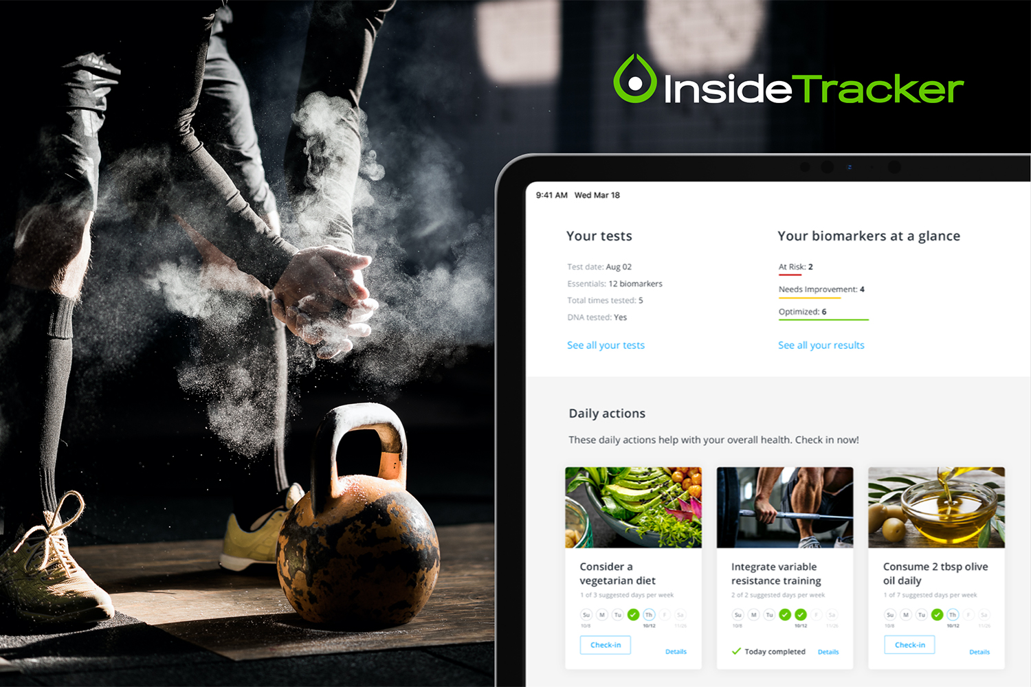 增强电源者不会有与每周三次光运动相同的饮食需求内部跟踪器进一步计算血液生物标志和遗传偏好,以培育营养计划,特别为您的需要设计。