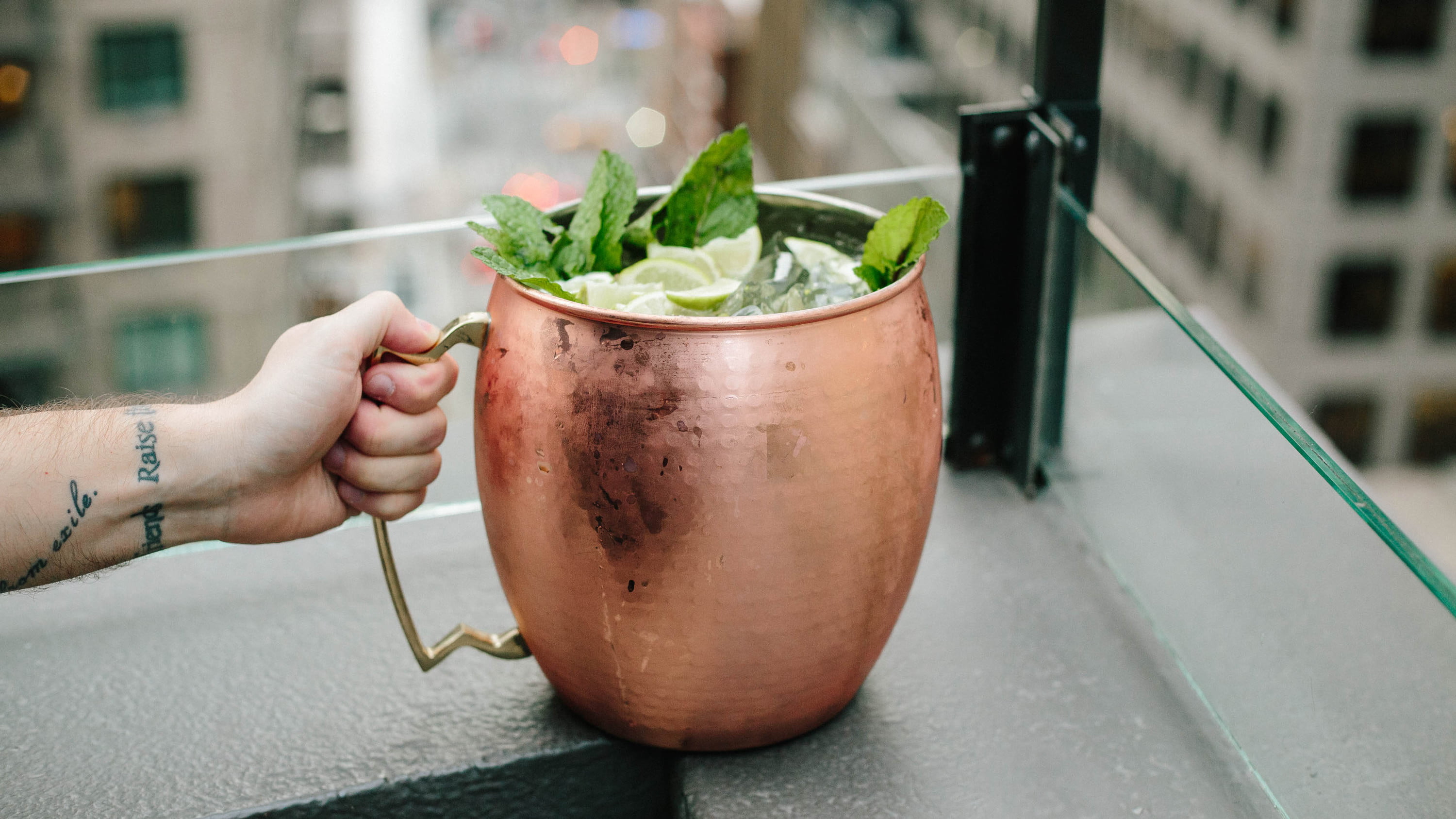 愿我们介绍另一个史诗般的饮料:梅尔巴骡子,你和字面上的每个人都是最好的朋友(或九个陌生人,没有判断)可以沉迷于善意的人博士露台,屋顶酒吧位于梦想市中心酒店在纽约市。