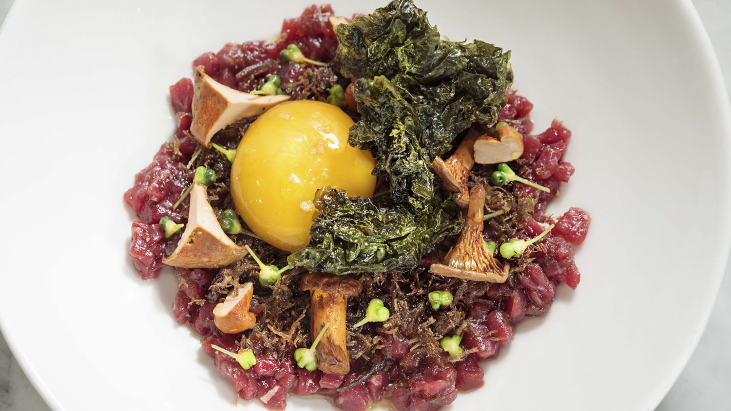 JY:例如,我们使用我们的肉类扁铁牛排制作一个贱民肉汤骨头汤我们要把全天菜单和早午餐菜单都列出来了。然后我们用煮软的肉煎一下,给鞑靼增加口感。