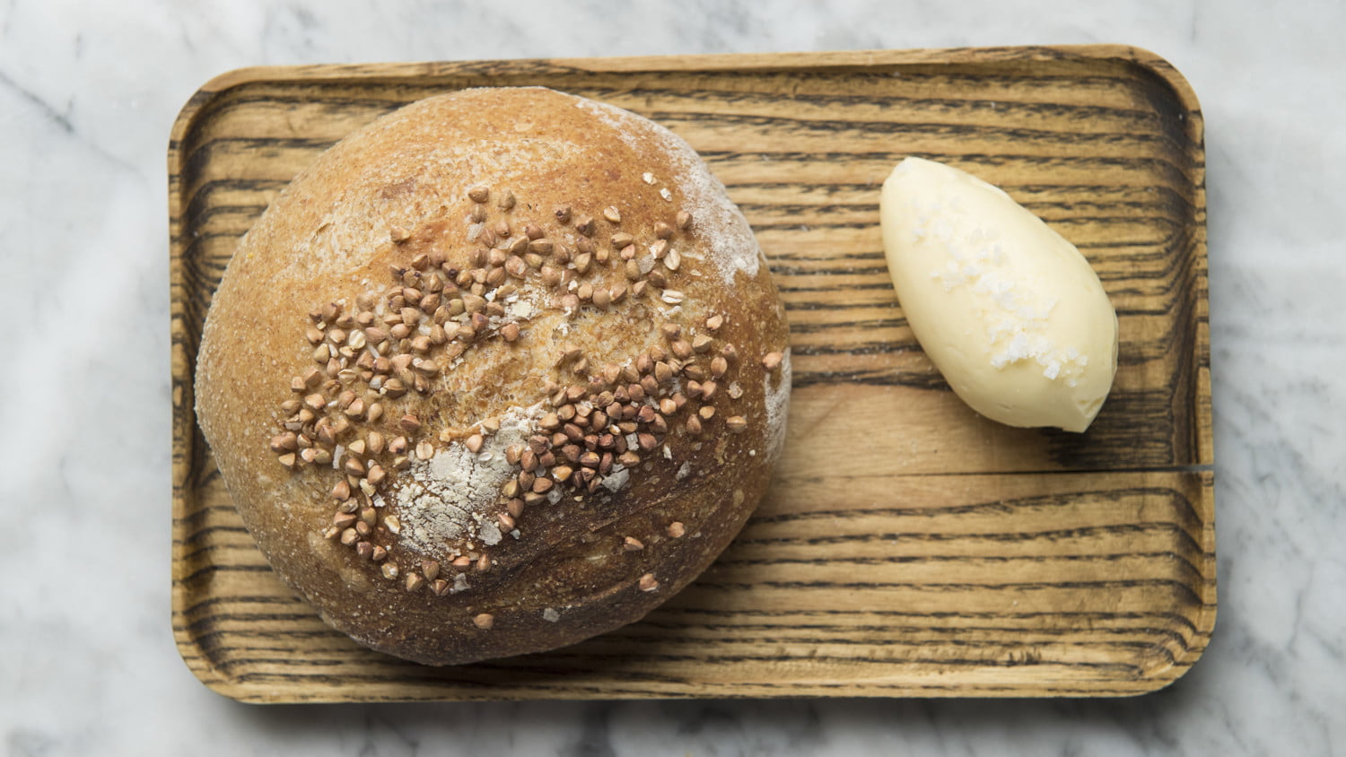 JY:我一直在寻求在味道概况方面简化概念。目前,我痴迷于三种口味的想法 - 最大!我想试图大胆地证明这些味道的点,没有任何褶边或分心。我真的很喜欢我们的新甜菜沙拉。我通常在菜单上总是有某种甜菜菜,但这个新的是我最喜欢的迭代。这只是用醋,盐和水煮熟的压力的甜菜。它们穿着核桃油,Peperoncino,橄榄油和柠檬。配以核桃黄油做的萨巴雍饼和亚麻籽做的饼干。