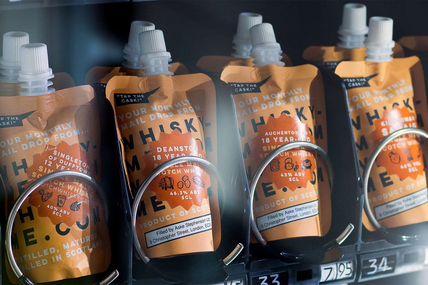 这是来自Whisky-Me.每月只需7英镑(包括运费),这家总部位于伦敦的订购服务公司就能将世界上最稀有、最独家、最好的单一麦芽苏格兰威士忌样品送到订购者的家门口。每瓶威士忌都装在一个很小的1.7盎司的袋子里,就像在酒店的自动售货机里找到的一样。