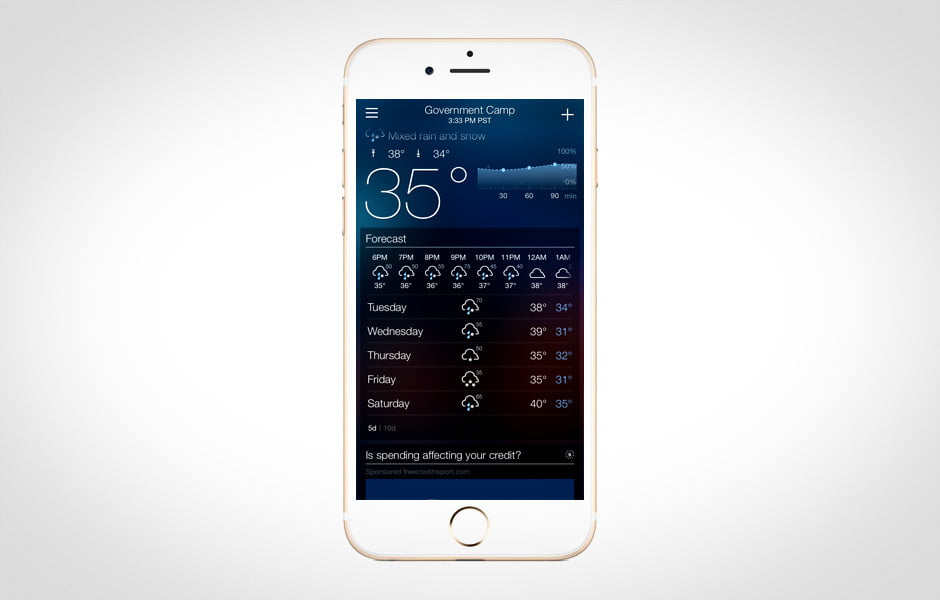 当你在路上时,天气至关重要。Yahoo天气仍然是我们最喜欢的天气应用程序之一,一个延长预测,降水,压力读数和日出时代的机会。它也很有吸引力,因为它的用户提交的Flickr照片符合赞美您当前的位置。