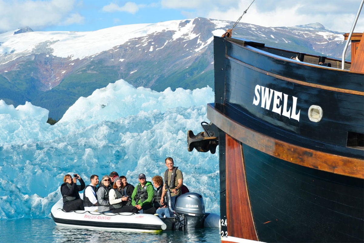 的阿拉斯加Supervoyage乘坐经典,88英尺拖船的游客探索州的沿海水域。船只可以采取乘客,与潮汐冰川接近,观看巨大的冰块落入下面的海洋。它的小尺寸也允许导航到遥控的受保护的小溪,在灰熊队经常喂食。除了船上热水浴缸外,还有很少的“传统”豪华设施,因为大多数客人都可以利用每日徒步旅行皮划艇、钓鱼和泡温泉的机会。