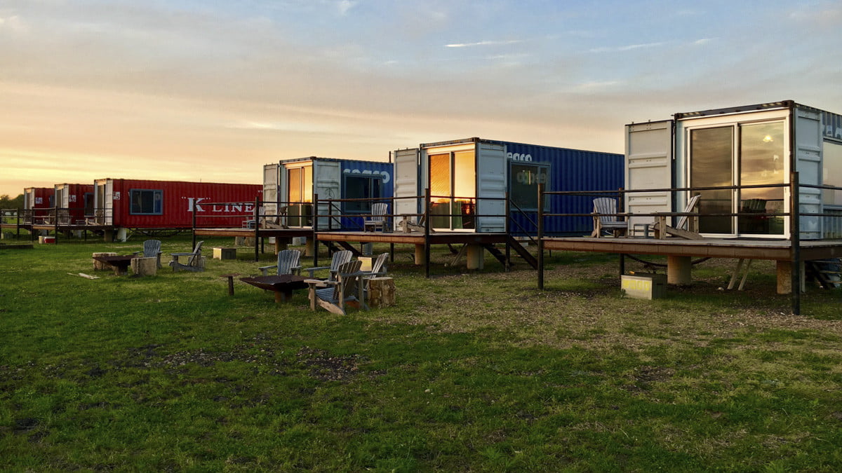 最后伯爵,圆顶,德克萨斯州 - 以奥斯汀和奥斯汀之间为中心休斯顿- 只是90个灵魂的所在地。农村吐了土地Flophouze酒店是建起来的感觉——真的吗是-远离任何地方。从后面看,6个“房间”的集合看起来完全像工业,就像你可能会想象的水泥块上的6个集装箱。但是,仔细一看,每个单元都有一种温暖、家庭般的加州冲浪小屋的感觉。私人露台都配有火坑、阿迪朗达克椅和吊床——所有这些都完美地位于享受令人惊叹的圆顶日落。每个房间都有一个俗气的名字,比如“Funky Cow-abunga”或“Smooth Sailin”,只会增加一种寒意和嬉皮士的氛围。