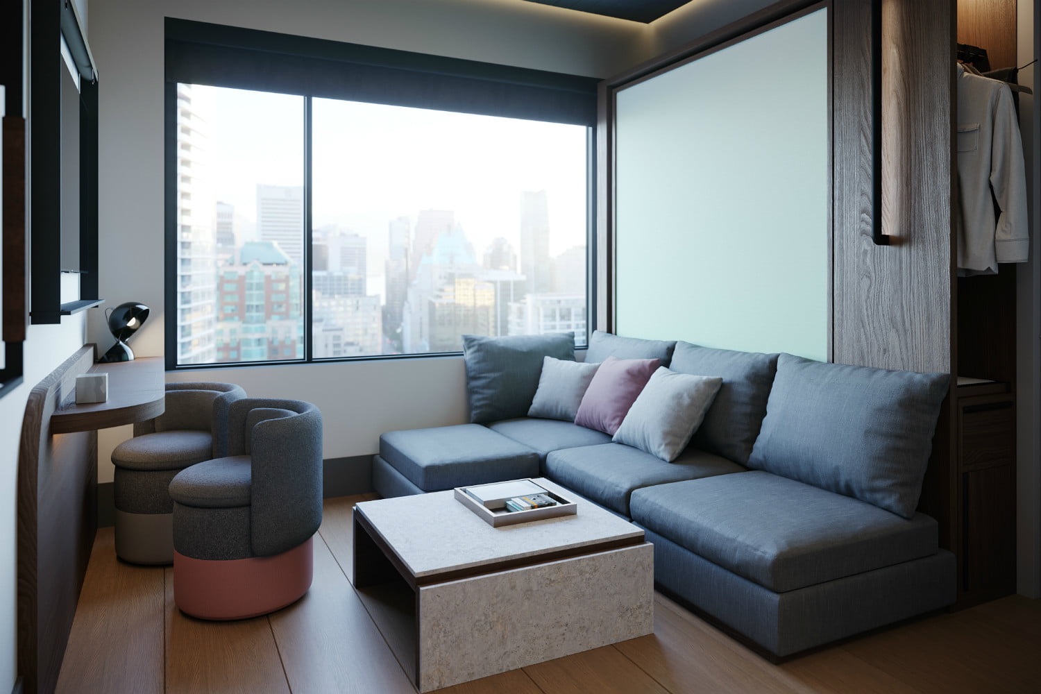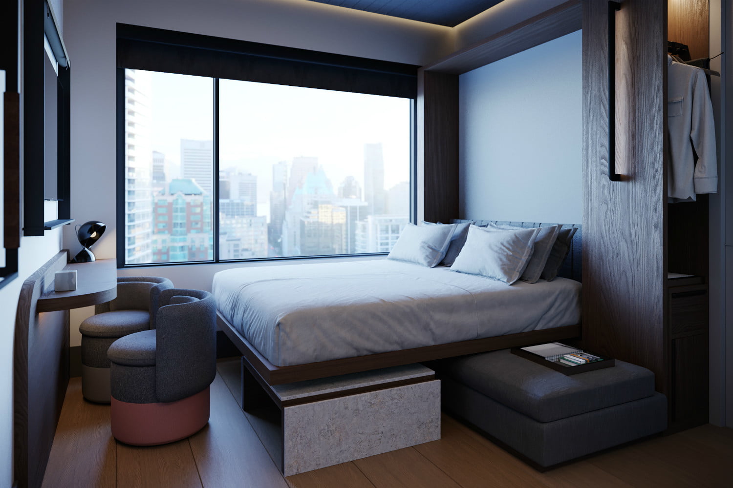 客房的平均面积只有163平方英尺,小房间的设计效率很高,配备了节省空间的功能,比如壁式床、高架床和具有双重功能的家具,比如可以变成大号床的沙发。这些房间也将是超级高科技的;所有客人都可以通过希尔顿荣誉酒店的移动应用程序访问和控制温度、照明和窗帘等。