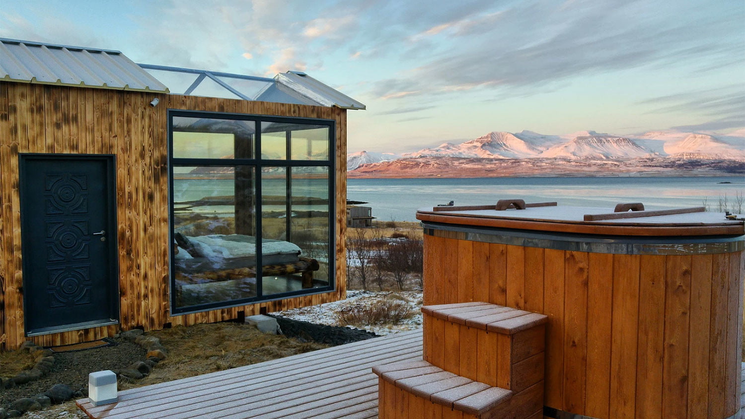 我们不会把铅埋了。冰岛餐厅独一无二的房间全景玻璃小屋提供了令人瞠目结舌的观点。这座豪华的玻璃小屋坐落在悬崖上,俯瞰着西冰岛的大海。在这里,旅客可以享受所有的舒适的家,包括一个设备齐全的厨房,一个带淋浴喷头的私人浴室,一个用餐区,Wi-Fi,和一个私人户外浴缸。如果这还不够,甚至还有一个玻璃封闭的卧室,那里总是有一个很好的机会看到北极光从你的床上。附近值得一看的景点包括徒步旅行在埃斯加山,格列姆瀑布,以及在Staupasteinn.