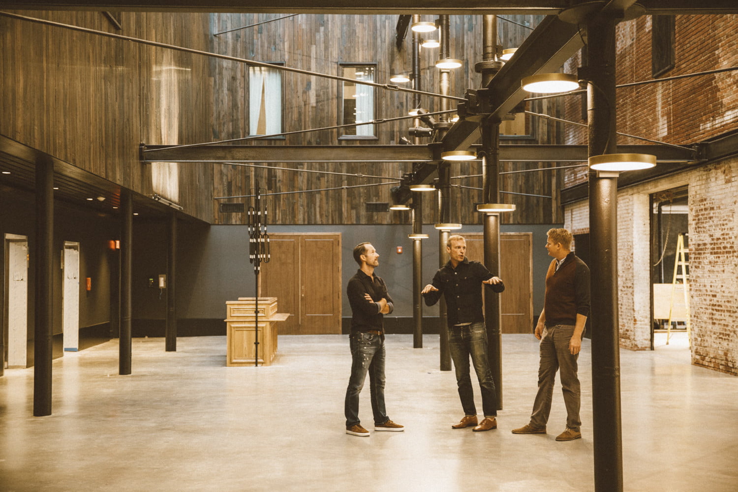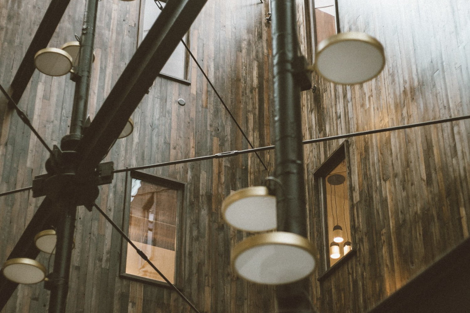 当然,建筑物的前一生作为Pabst Brewing CO装瓶厂就像它所获得的“Heartland Americana”。该建筑和设计团队试图维持其原始仓库美学 - 破裂砖,苦恼的木柱,良好的混凝土。内部将这些工业骨骼混合,具有美丽的高档装饰,如深层织物,黑化金属饰面和重肋玻璃夹具。
