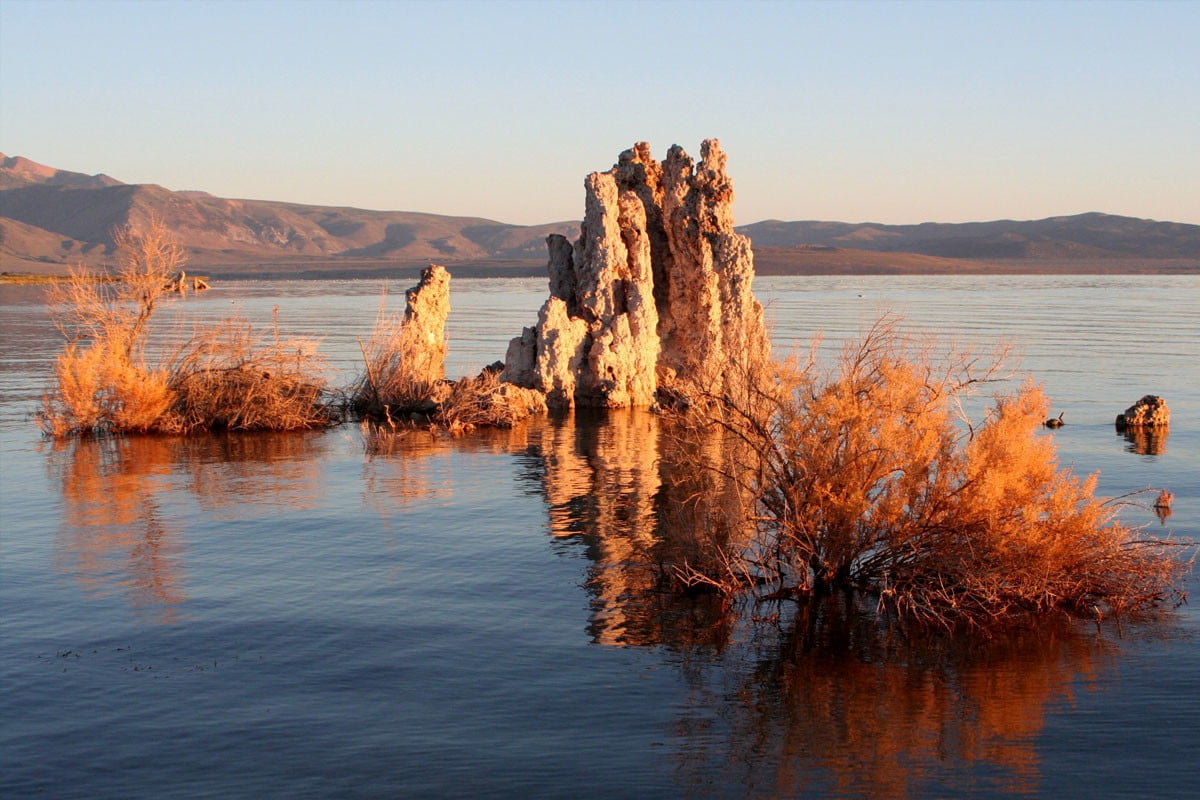Tioga山道的尽头是方解石层莫诺湖- 395公路沿线最具标志性的车站之一。这是摄影师最喜欢的地方,原因显而易见。这些地质构造被称为石灰华——给景色带来一种奇特、超凡脱俗的感觉。湖中高浓度的盐分维持着一个独特而有限的生态系统,每年也吸引着数百万只鸟类。很高兴知道:日出和日落时的拍照场面非常壮观。