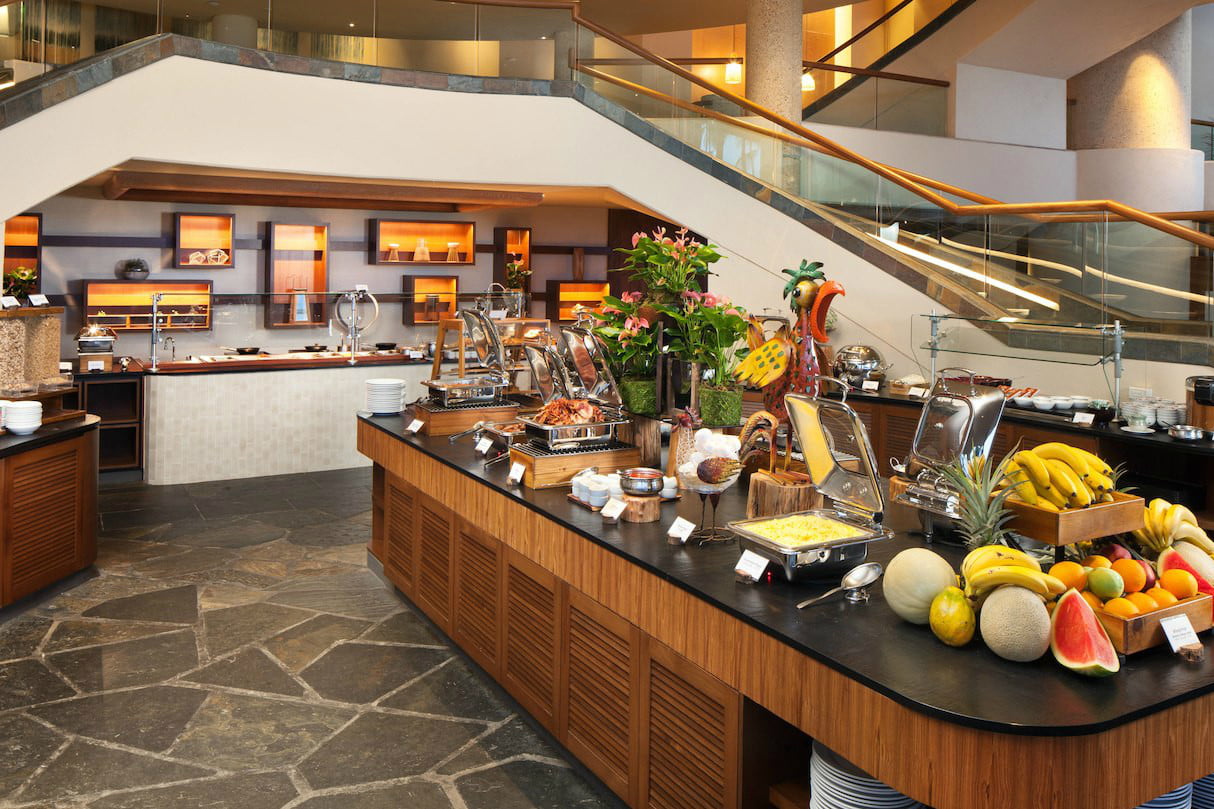 餐饮场所威斯汀·哈普纳海滩度假村比赛。在享用美味和新鲜的自助早餐开始您的一天'Ikena登陆.从传统的美式早餐如培根、鸡蛋、香肠、煎饼到传统的夏威夷食物如芋泥,再到亚洲风味的食物,任何口味的人都可以享用。此外,为了保持威斯汀酒店健康的主题,新鲜水果、酸奶、冰沙和绿色食品大量供应给那些想在天堂度假时保持健康饮食的人。