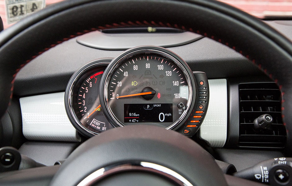 效率也是一个问题。EPA估计了Cooper S Hardtop,实现了27英里MPG市,38公路,综合得分为31 MPG。不可否认,这些非常好。但是,就像SAT得分乔治科斯坦加一样Seinfeld.声称,它们不是基于现实的。在我的时间内,迷你平均为18英里/mp。授予,我在城市的油门上很沉重,但这仍然是非常差异。