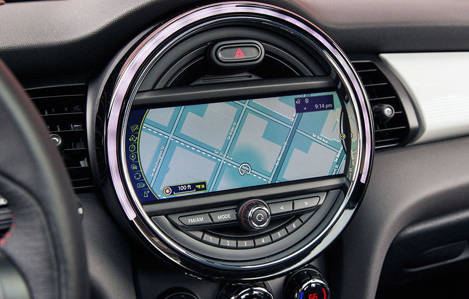 值得庆幸的是,仪表部件不是内部唯一的固体组成部分。导航,称为Mini导航XL(BMW的变体),使用和观众非常好。图形非常出色,其许多菜单直观且易于导航。