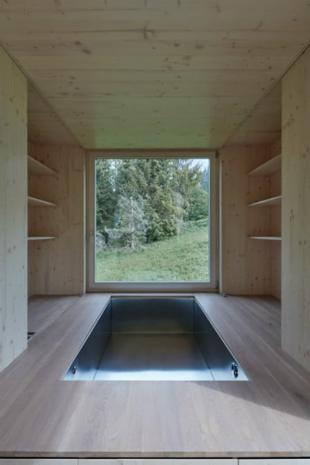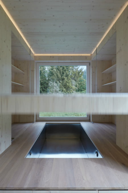 欣赏自然是驾驶概念,De Backer和Mikovčák希望确保他们的客舱对环境友好。高效窗玻璃玻璃允许内部温度保持恒定,在冬季保持空间温暖,夏季凉爽。在整个建造过程中使用云杉的木材并在外面染色,融入森林的深色绿色,在里面留下自然,以创造一个明亮的通风空间。保持这些内部饰面简单,让外部视图仍然是焦点。进入野外是一个概念舱,所以它缺乏太阳能和雨水收集系统等少数可持续特征,但建筑师说这些可以很容易地添加。