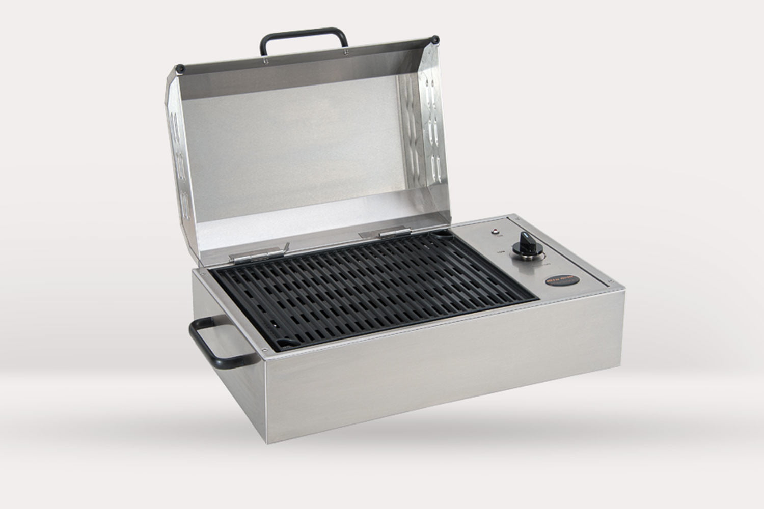 所以对于这个,你需要一个电源插座,把你限制在有设施的露营地,房车,有电源的小屋,或者你自己的后院。但是,在偏远地区使用时失去的适用性,却能获得惊人的性能。这款插入式电烤架很可能是你在家里使用的唯一的烤架,因为它的高超的热控制和它可以达到的高温。你可以用手或用洗碗机清洗炉排;滴水盘可以使用很多场合,但一旦弄脏了就可以扔掉。凯尼恩让事情变得简单:烤架只有一个旋钮控制,它的特点是关闭位置和八个不同的热设置,从低到高。还有,这是"波士顿红袜队的正式烧烤"仅供参考。