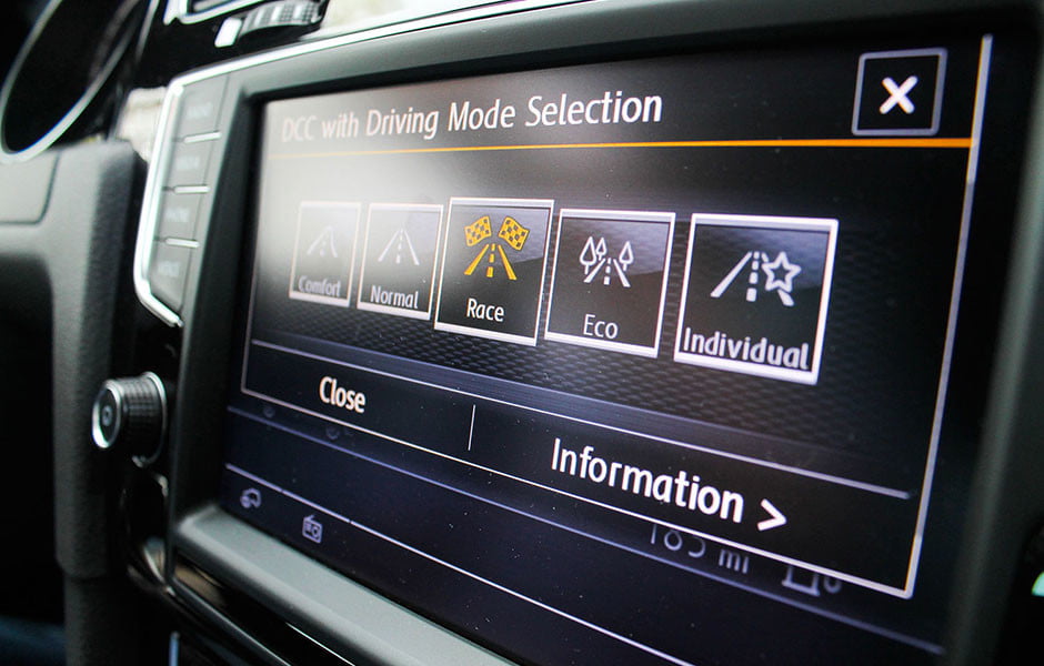 掀背的DSG自动变速箱是另一个巨大的亮点。它速度快,反应灵敏,大部分时间都能很好地完成工作,你甚至不需要使用冲浪板。在标准触摸屏上切换“Race”驾驶模式,赛车就能像冠军一样保持档位,利用1800转/分钟的280磅英尺扭矩。它也收紧了转向和悬挂明显。