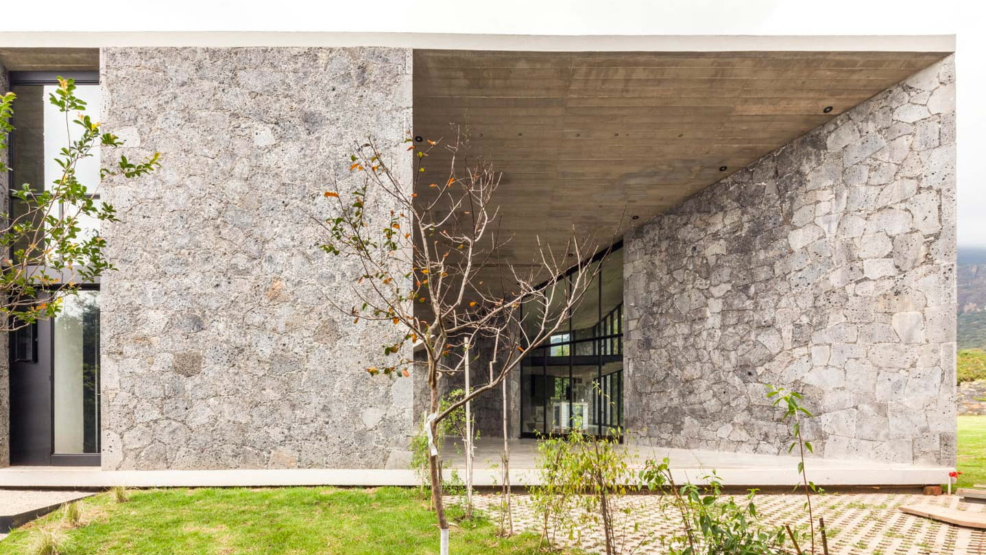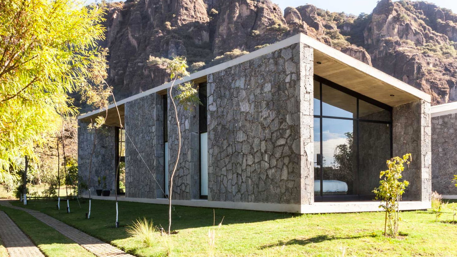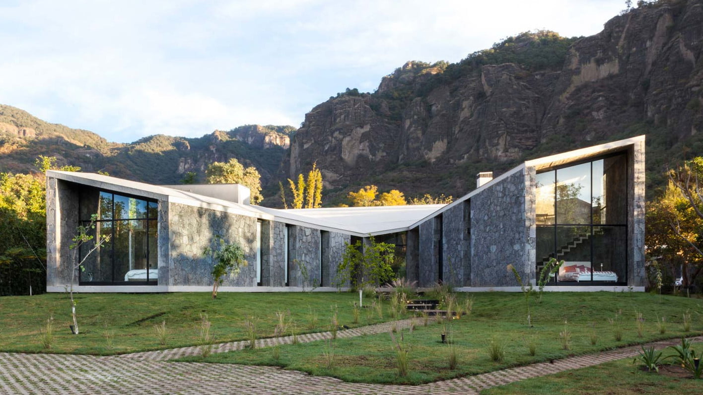 在Tepoztlán的郊区,马的房子这是一座现代的石头堡垒,它为周末度假带来了新的含义。