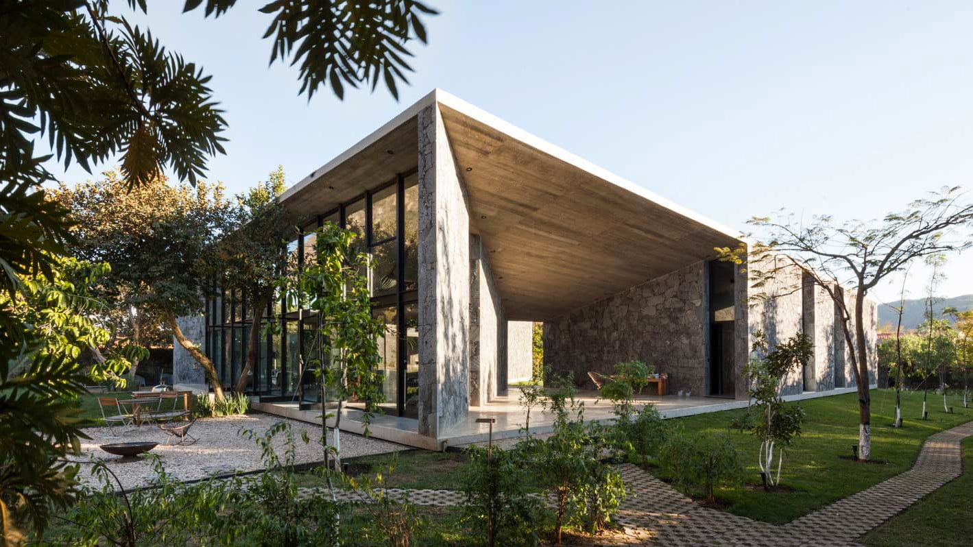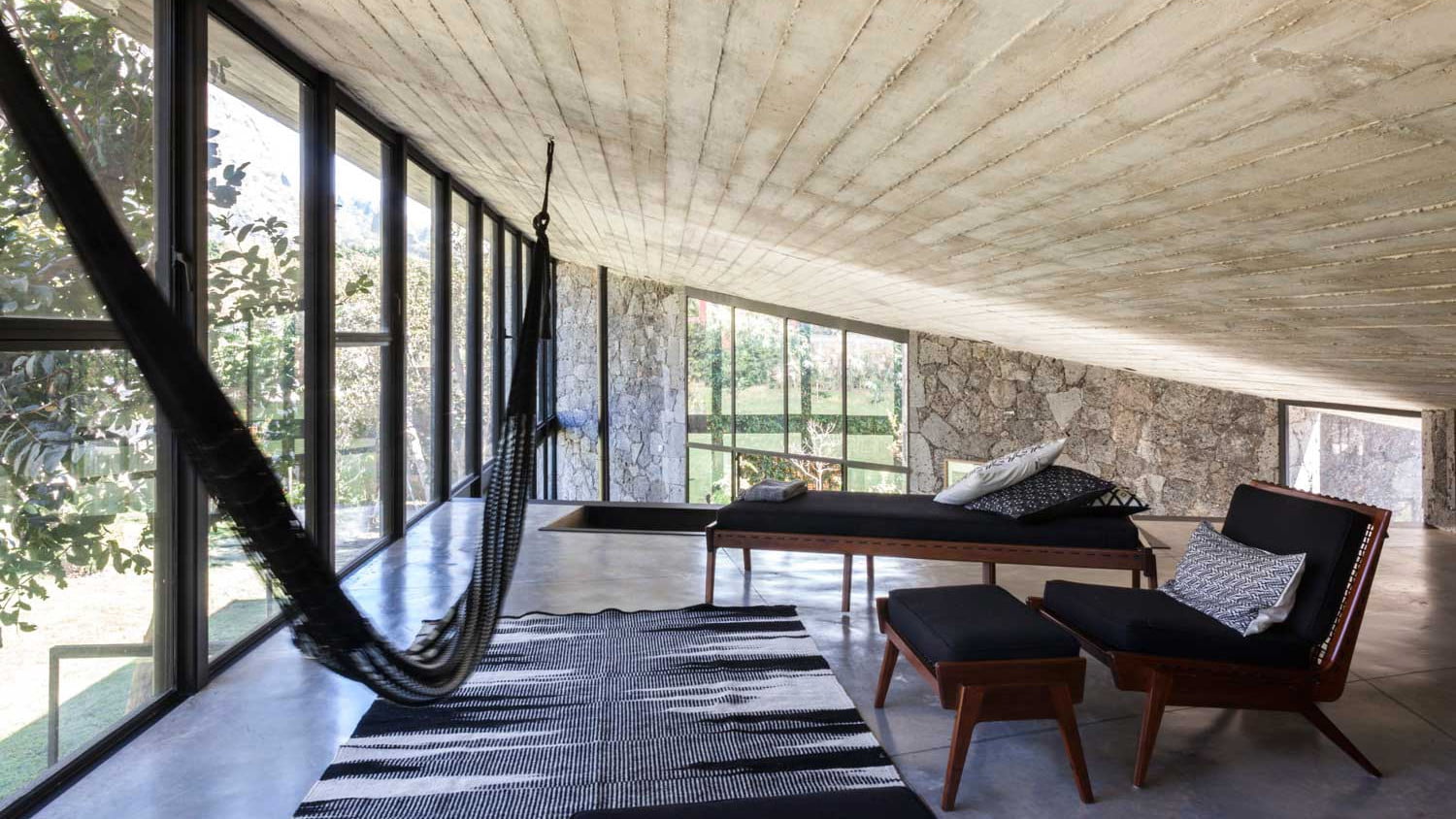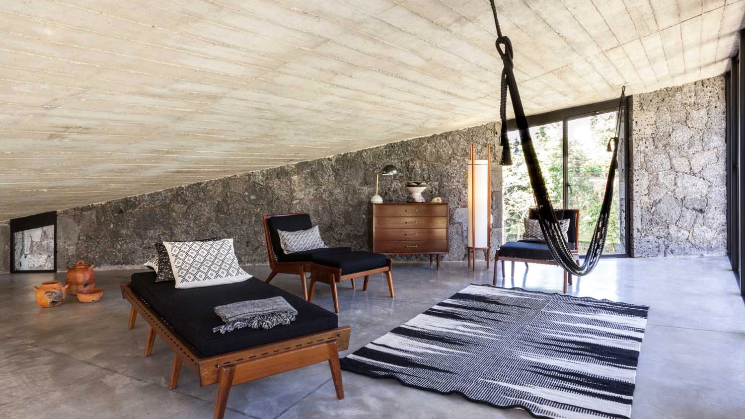 在Tepoztlán的郊区,马的房子这是一座现代的石头堡垒,它为周末度假带来了新的含义。